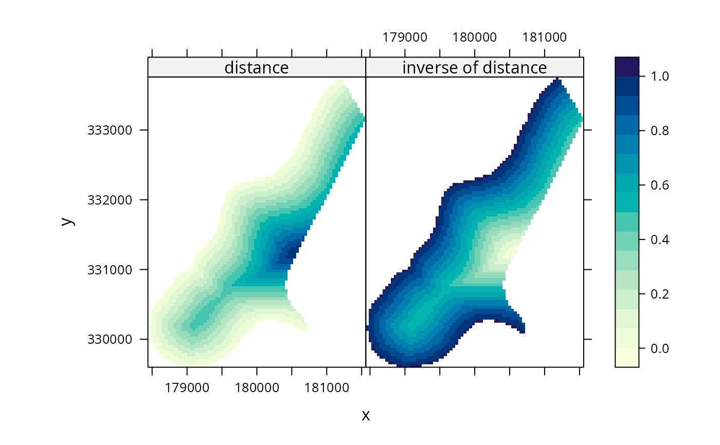 c("distance", "inverse of distance")), aspect = "iso")
