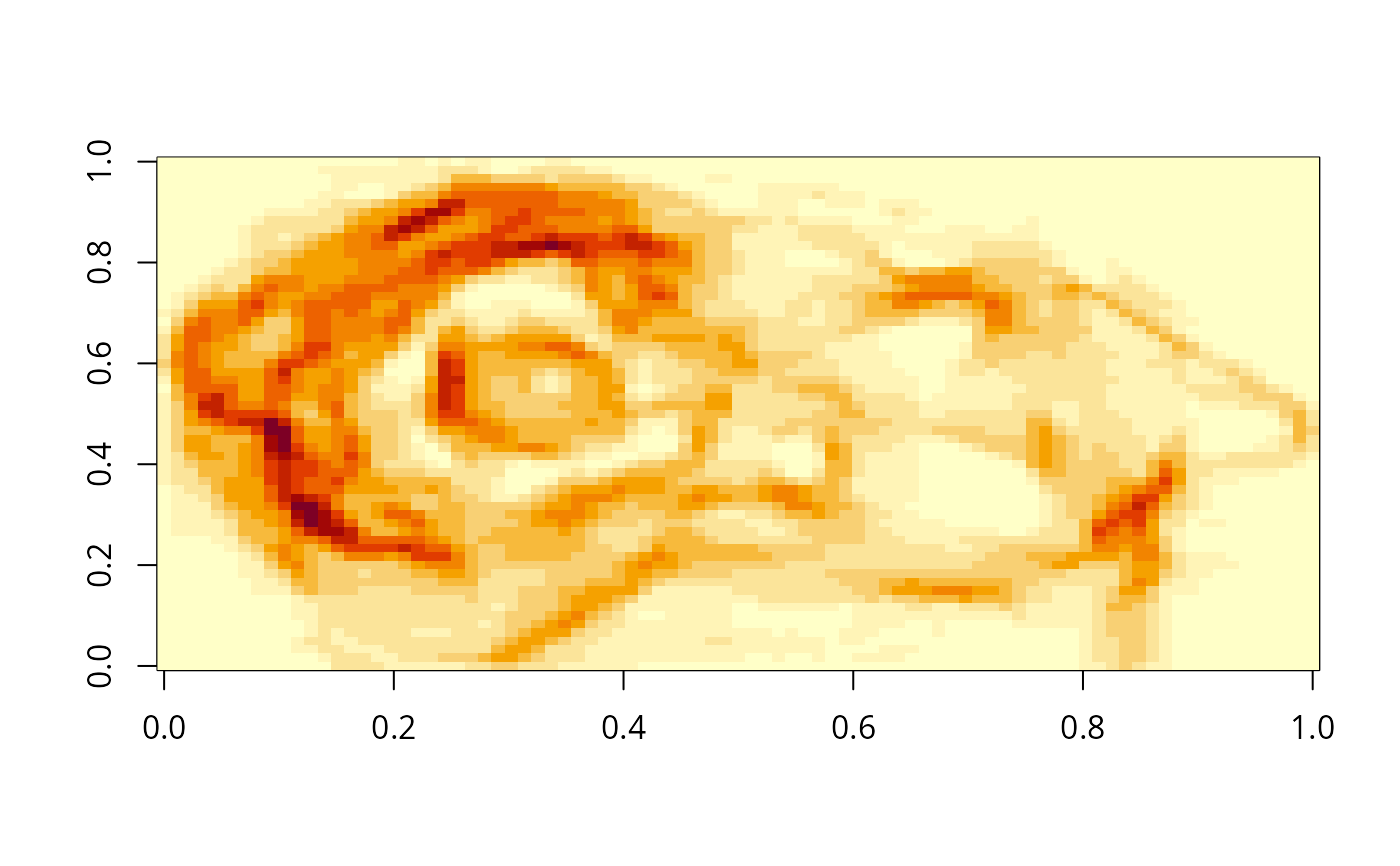 surfaceArea.matrix(m, cellx = 1, celly = 1, byCell = FALSE)a matrix of height values, or an object of class SpatialPixelsDataFrame or SpatialGridDataFrame.