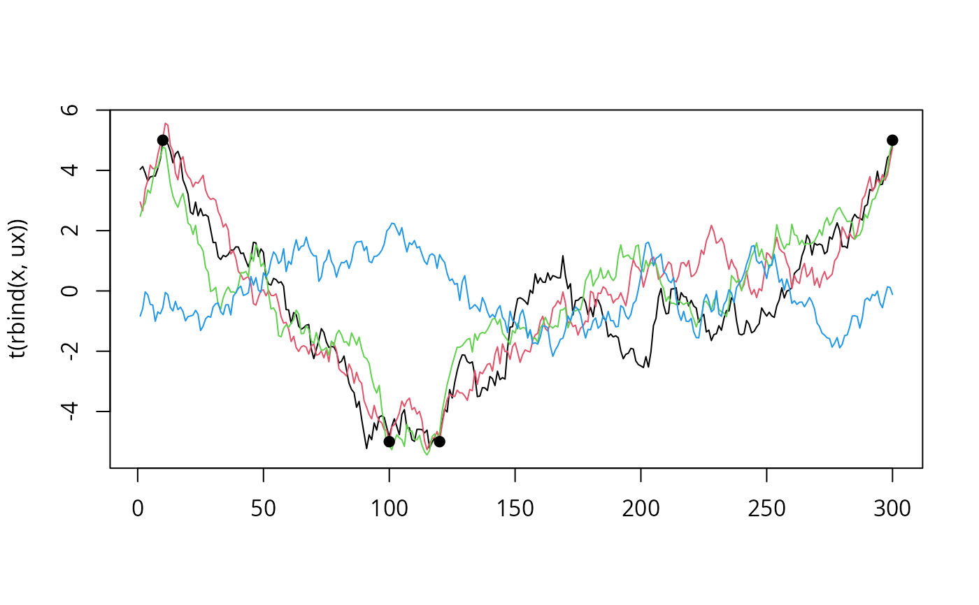 matplot(t(rbind(x, ux)), type='l', lty=1)
