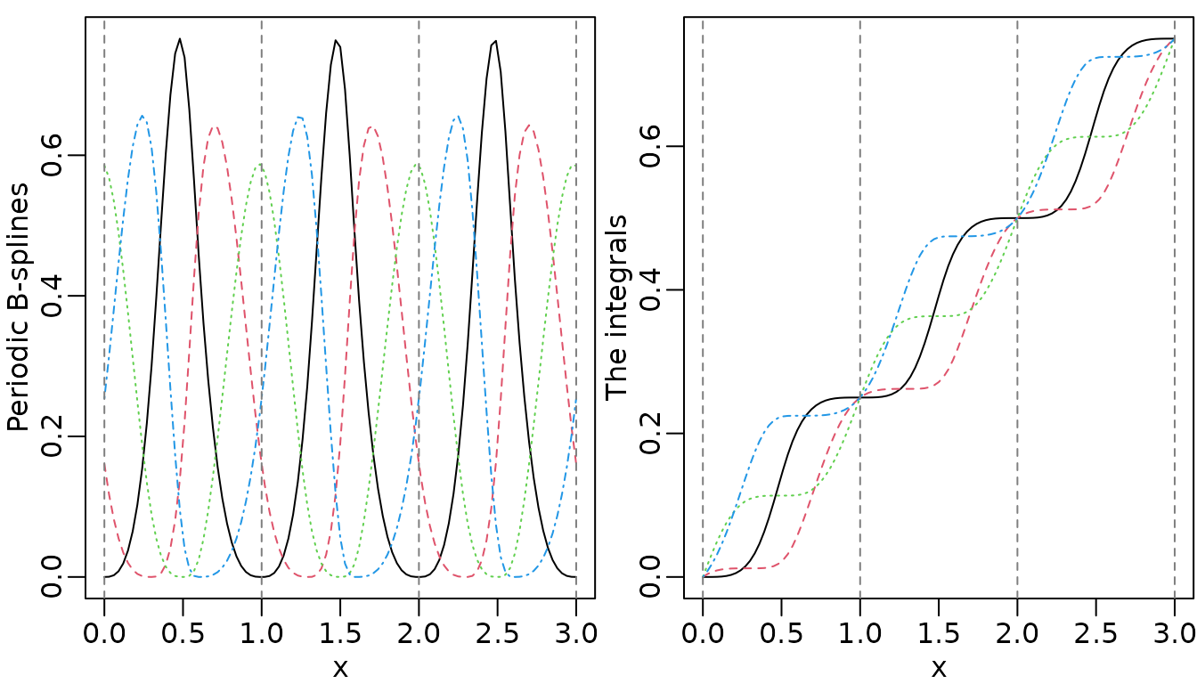 functions if integral = TRUE, 4) periodic basis functions