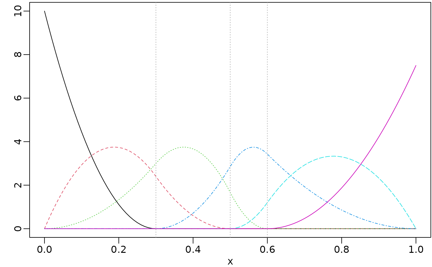 spline_basis2 <- mSpline(x, degree = degree, knots = internal_knots,
