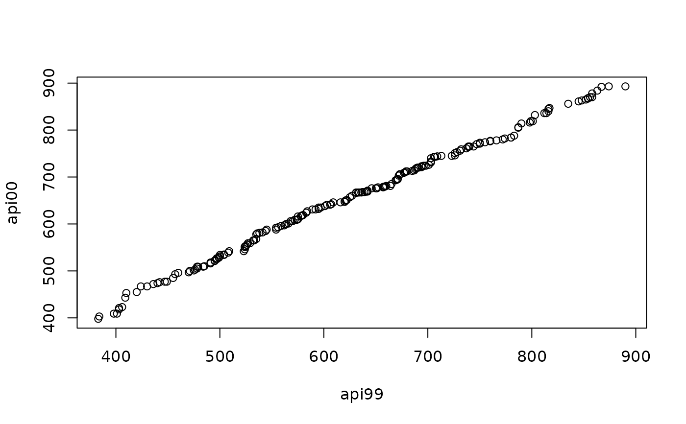 qqplot(apiclus1$enroll, apistrat$enroll); abline(0,1)