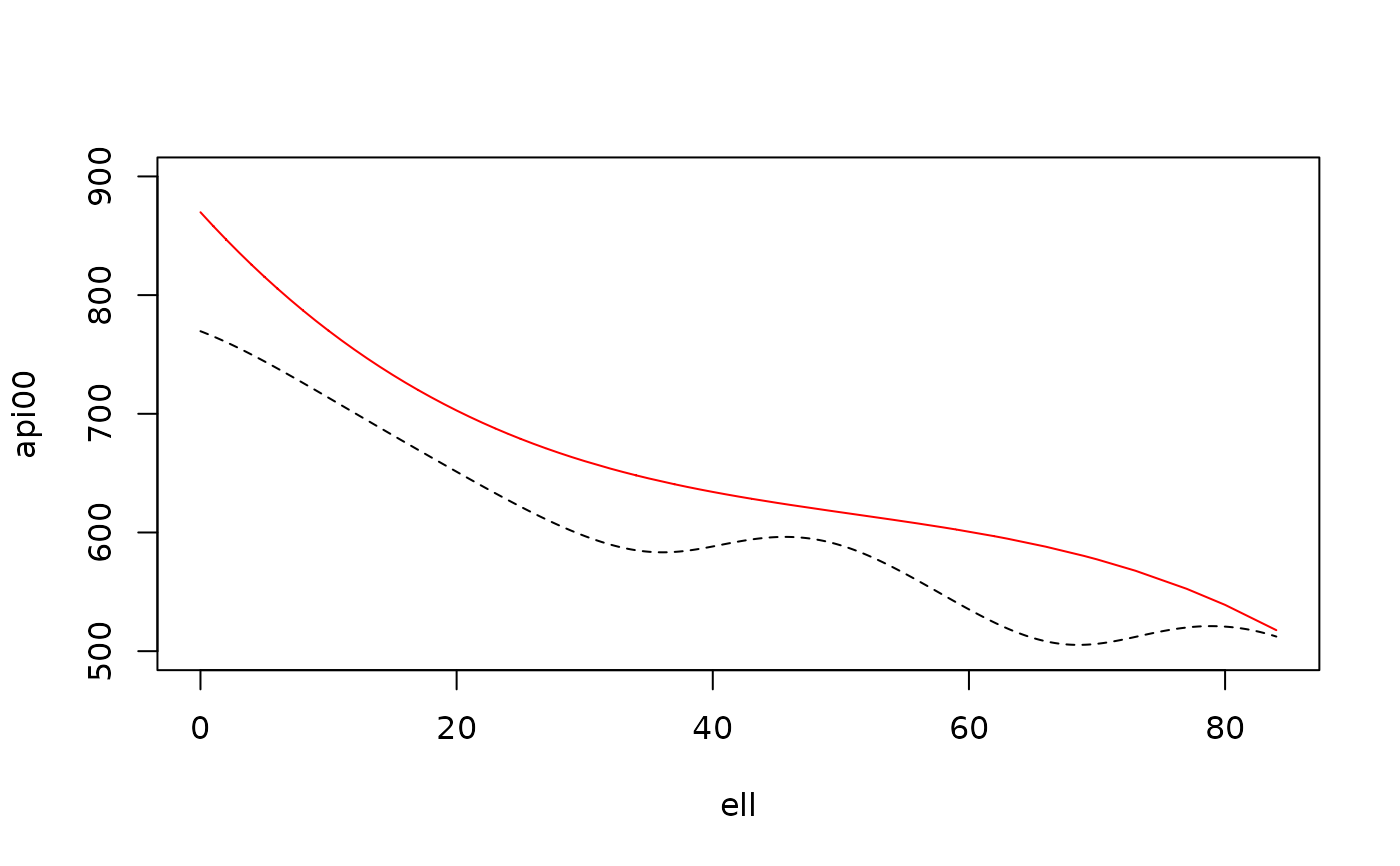 smth<-svysmooth(api00~api99+ell,dstrat)
