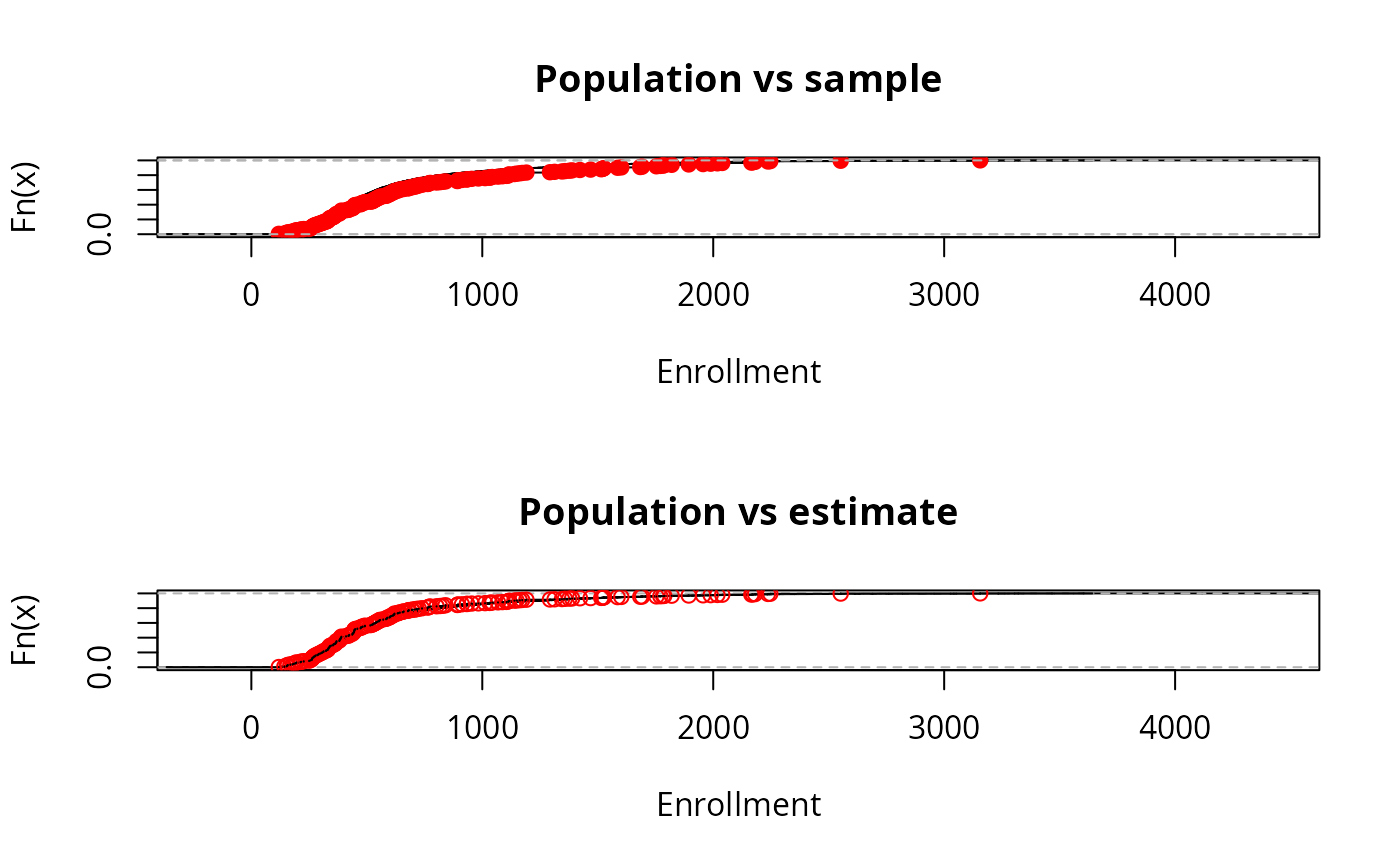 plot(cdf.pop,main="Population vs sample", xlab="Enrollment")