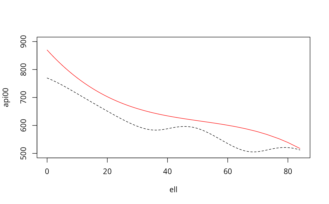 smth<-svysmooth(api00~api99+ell,dstrat)