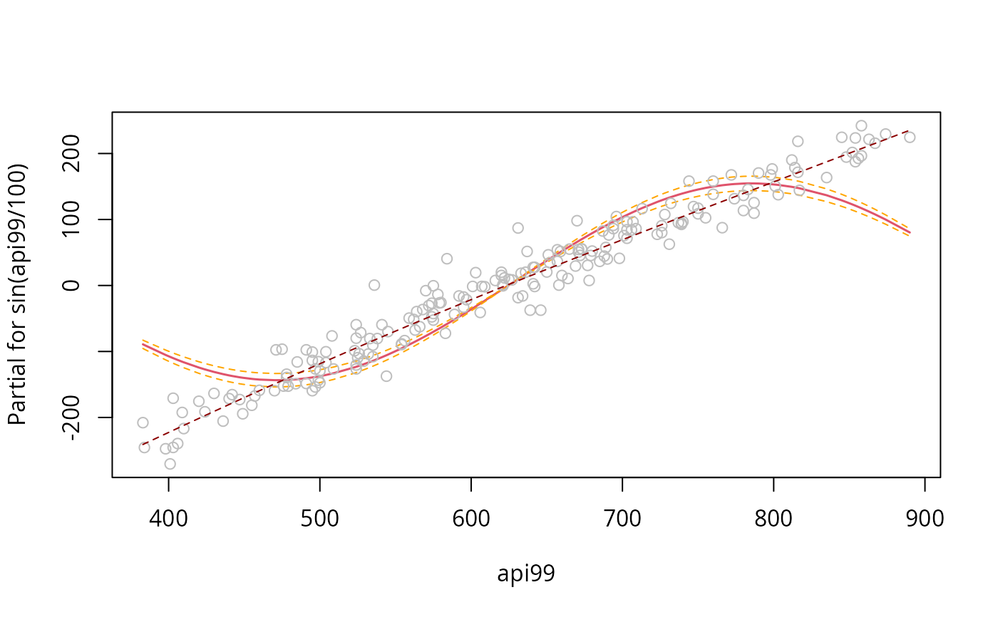 m<-svyglm(api00~sin(api99/100)+stype, design=dstrat)
