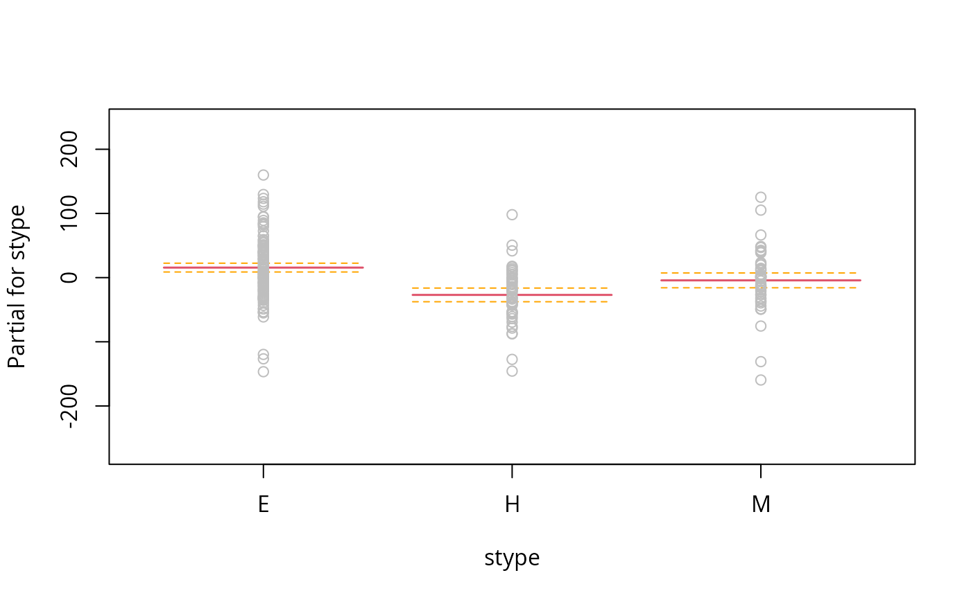 termplot(m, data=model.frame(dstrat), partial.resid=TRUE, se=TRUE,