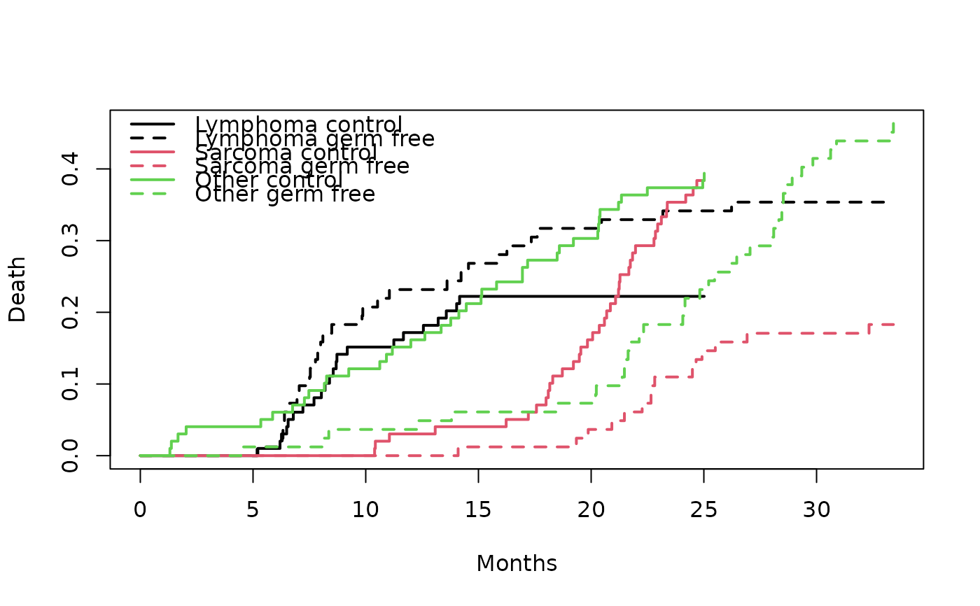 legend("topleft", c("Lymphoma control", "Lymphoma germ free",