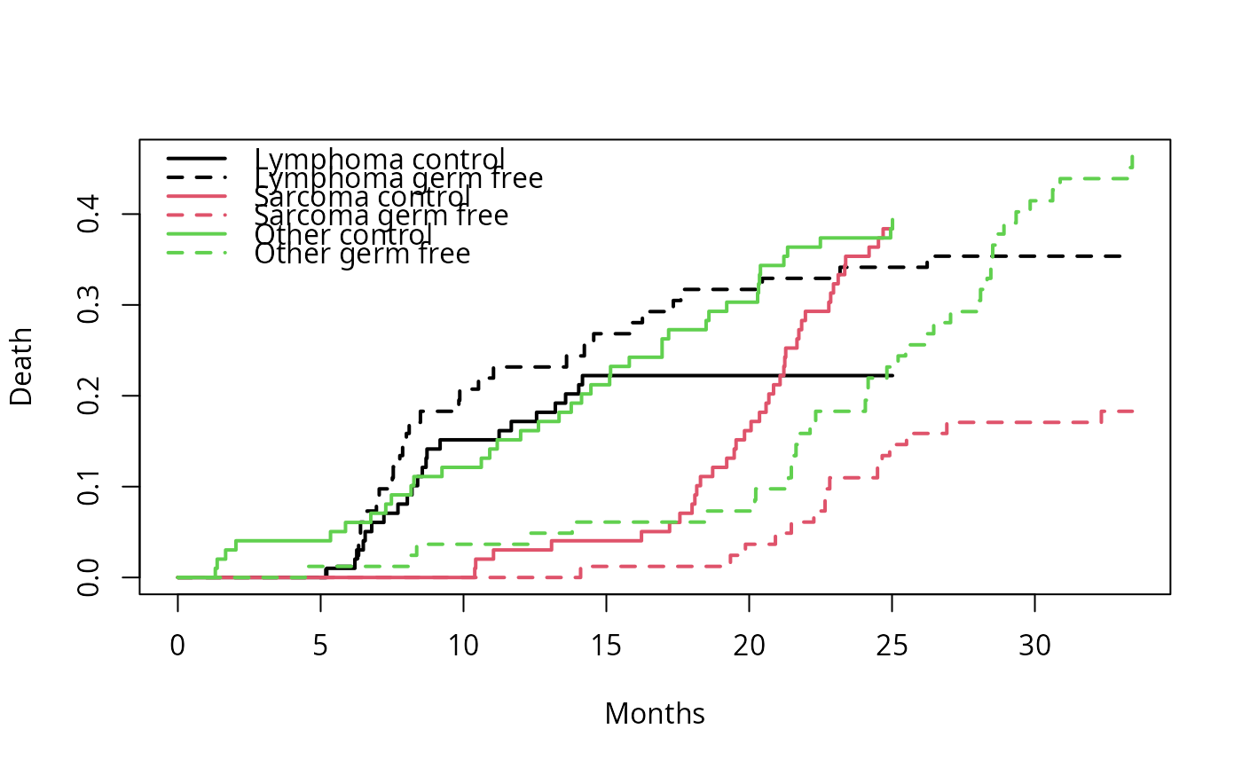 legend("topleft", c("Lymphoma control", "Lymphoma germ free",