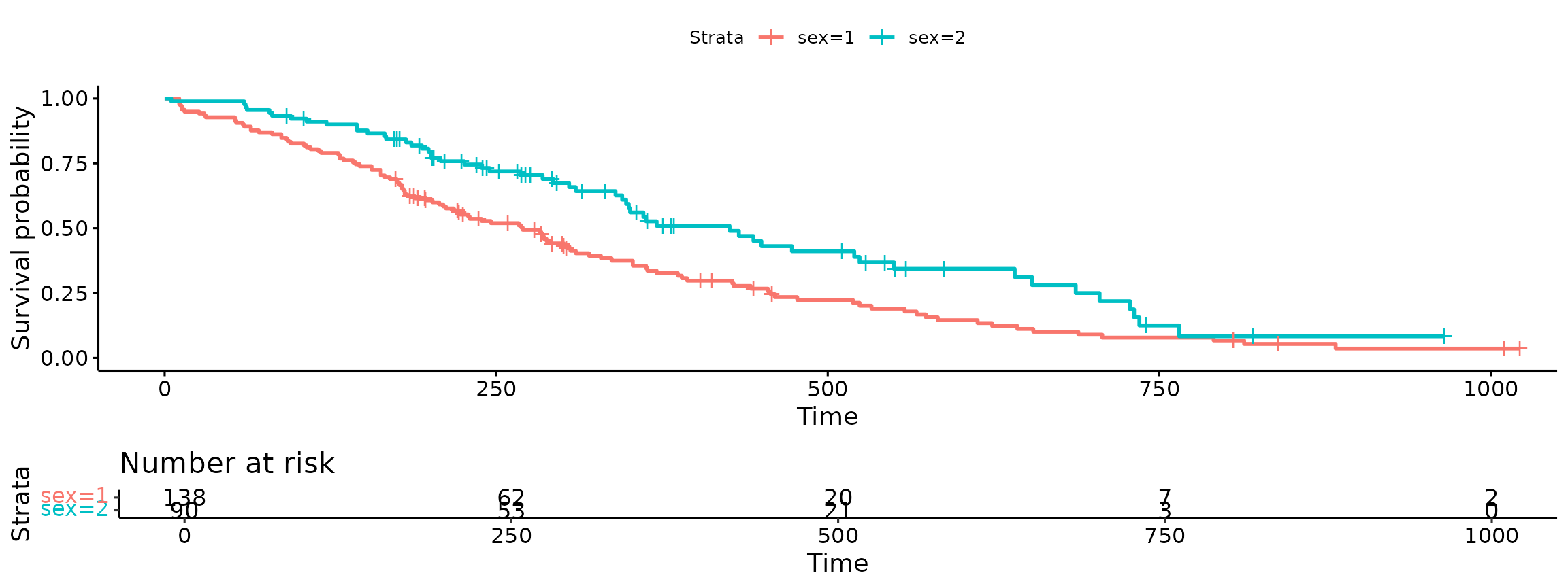 fit<- survfit(Surv(time, status) ~ sex, data = lung)