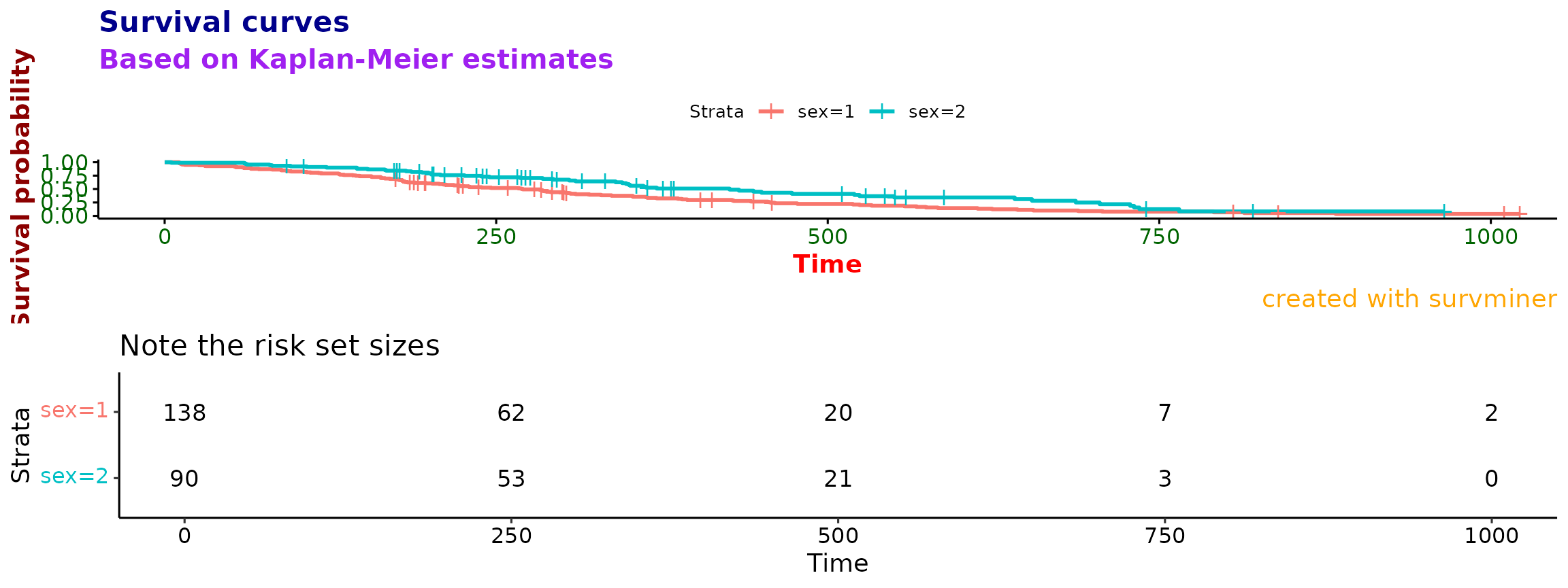 risk.table.title = "Note the risk set sizes",