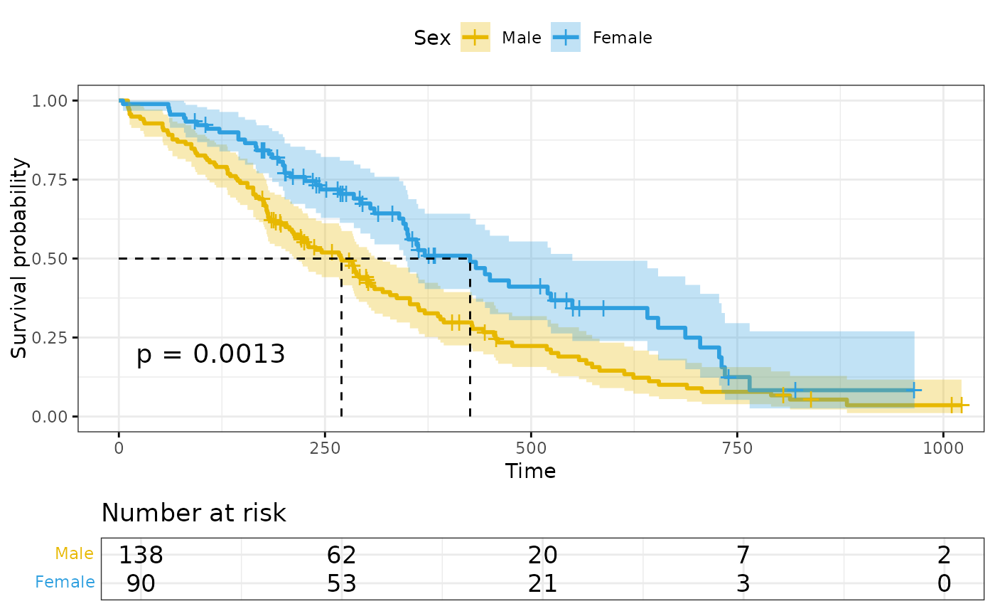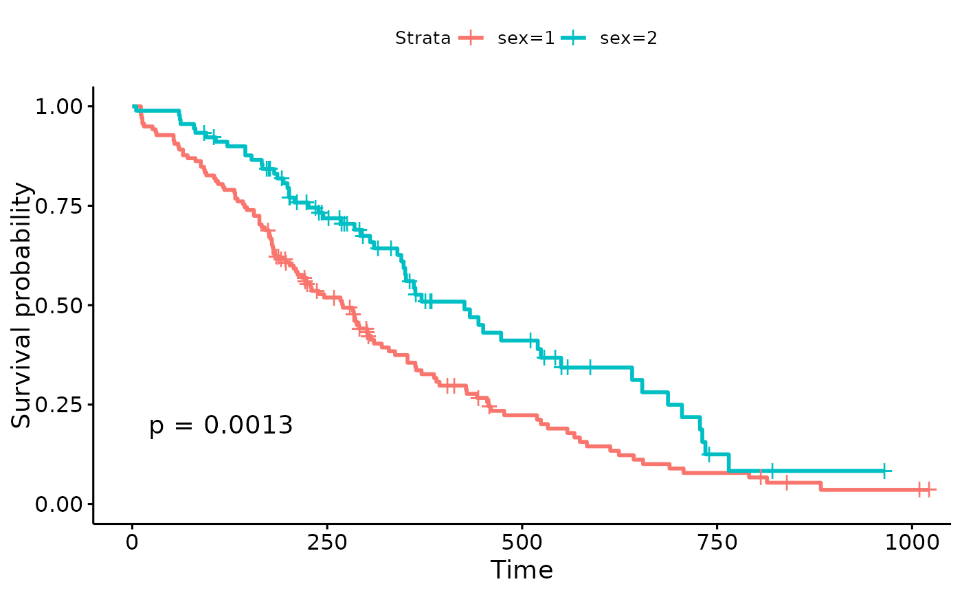 fit<- survfit(Surv(time, status) ~ sex, data = lung)