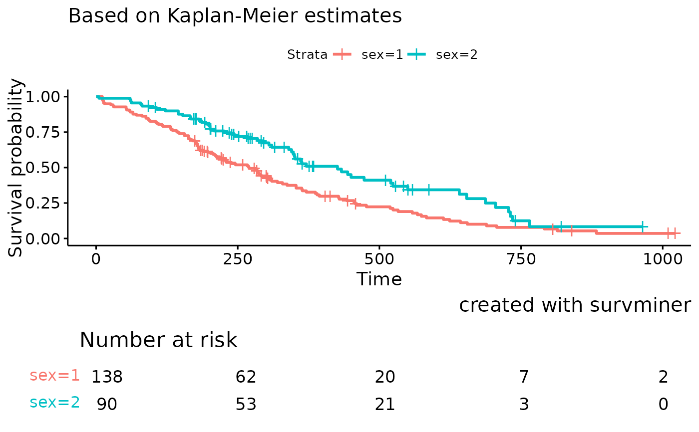 fit<- survfit(Surv(time, status) ~ sex, data = lung)