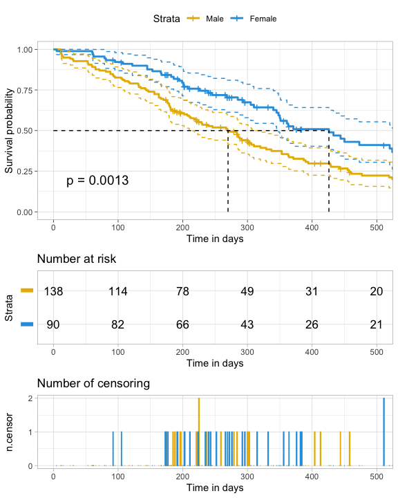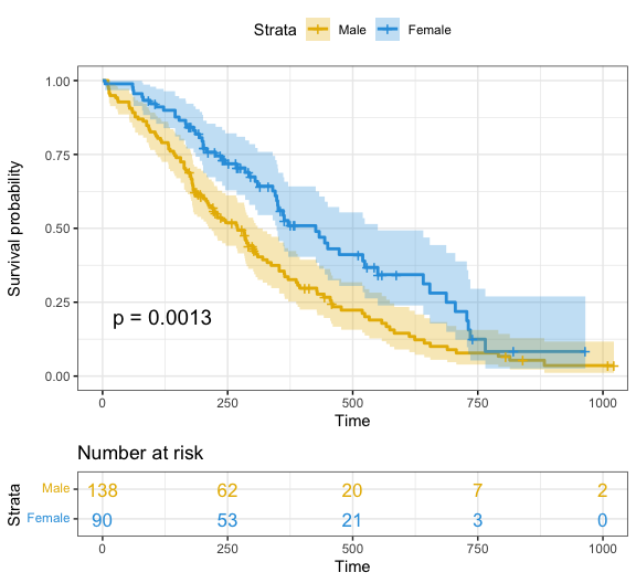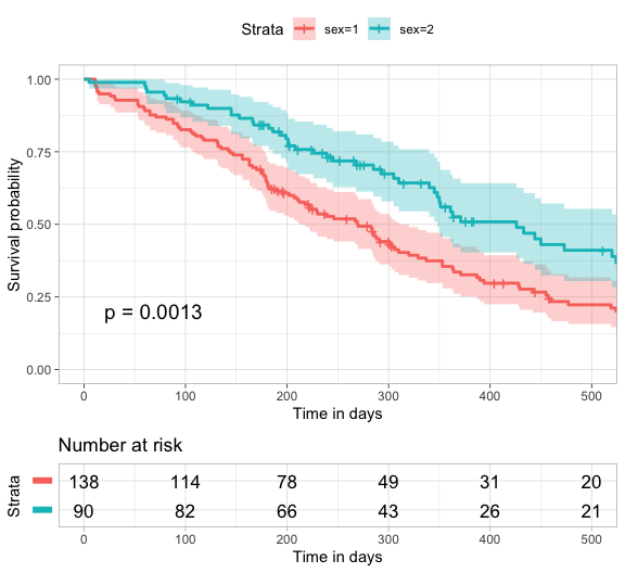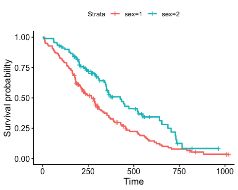 fit <- survfit(Surv(time, status) ~ sex, data = lung)