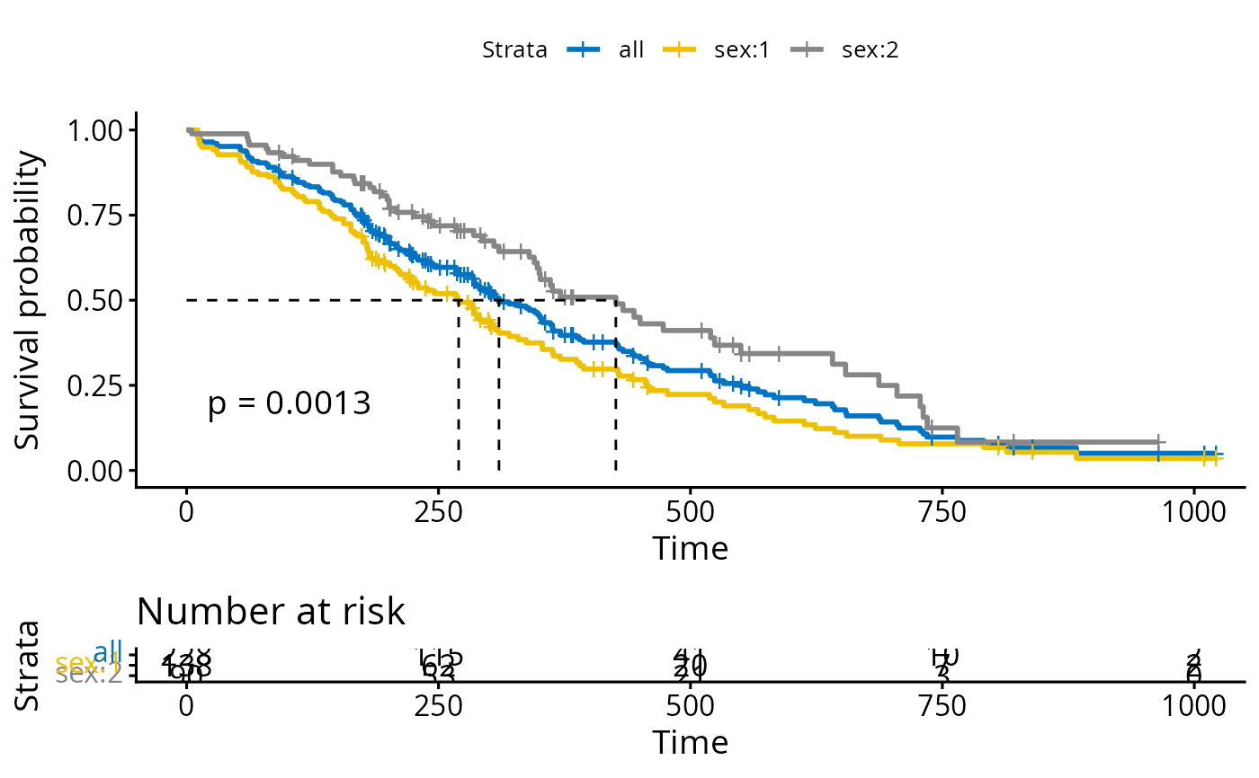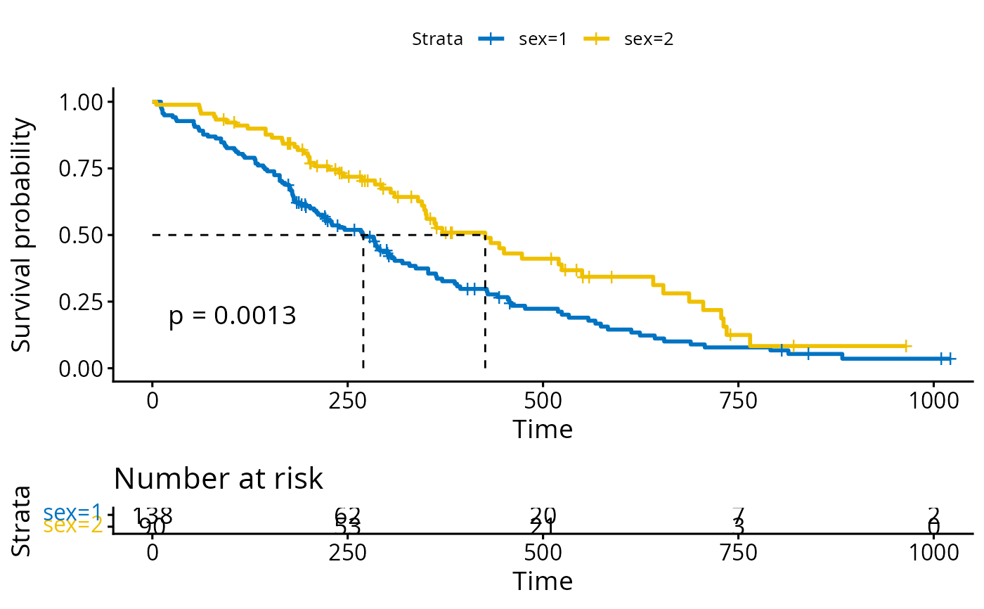 fit <- surv_fit(Surv(time, status) ~ sex, data = lung)