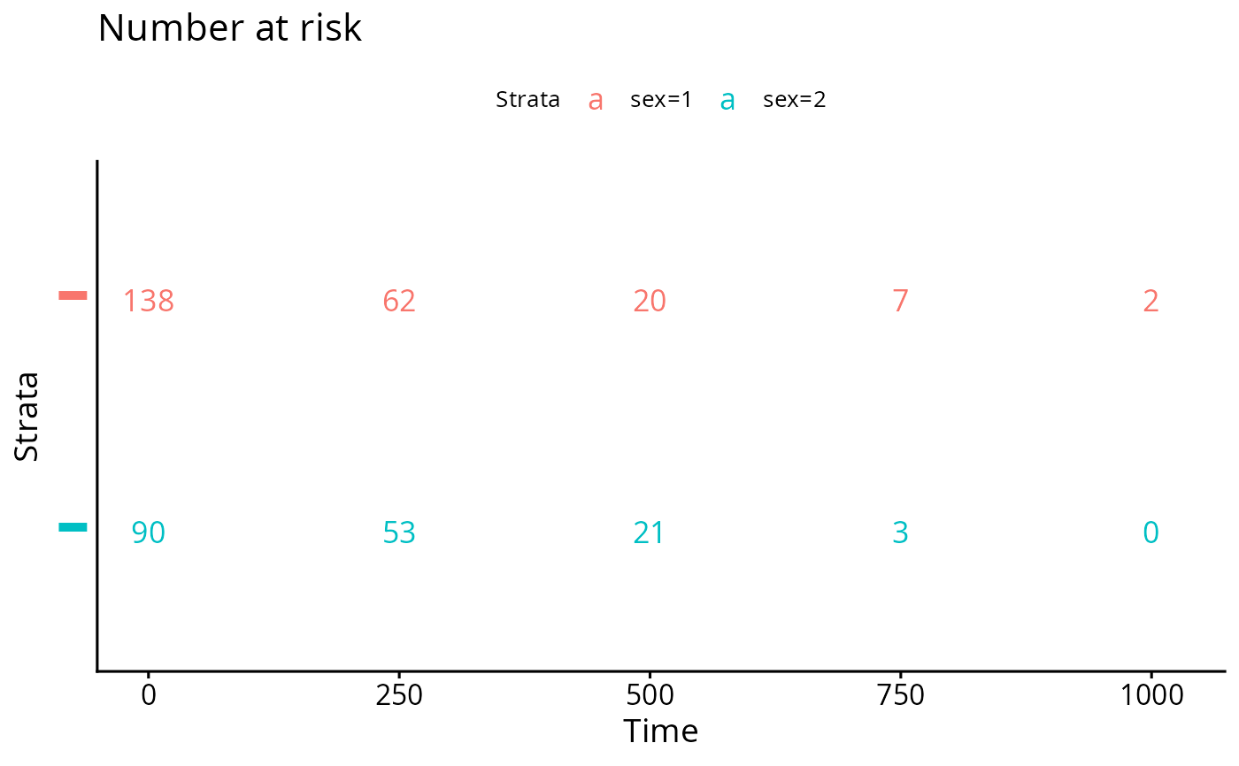 tables <- ggsurvtable(fit, data = lung, color = "strata",