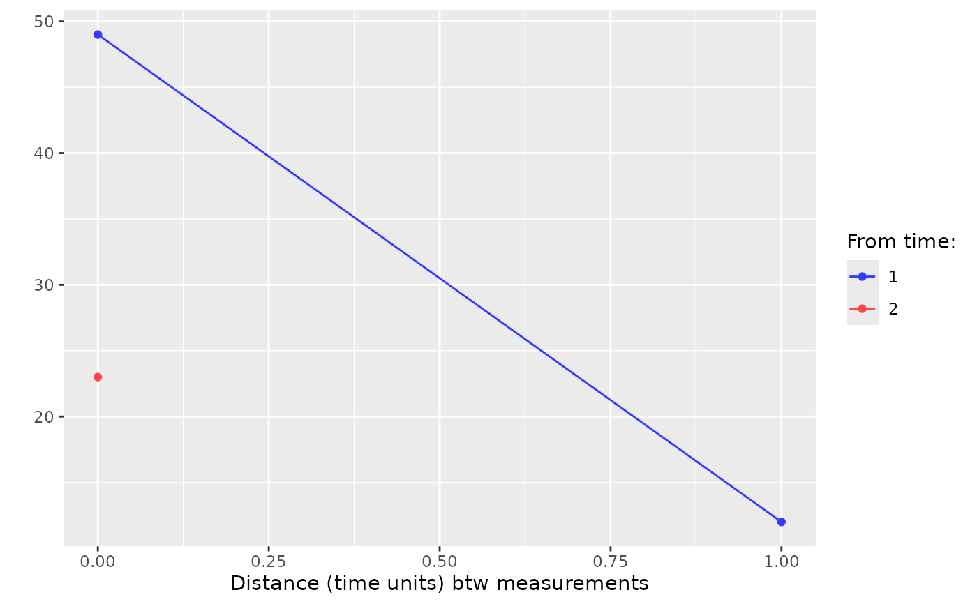 Plot of covariance (or correlation) matrix as a function of lag or time. The covariance structure is vectorized internally and lag or time distances are computed and can be used for visualization.