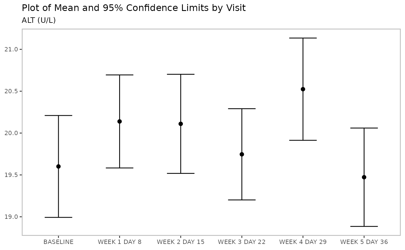 title = "Plot of Mean and 95% Confidence Limits by Visit",