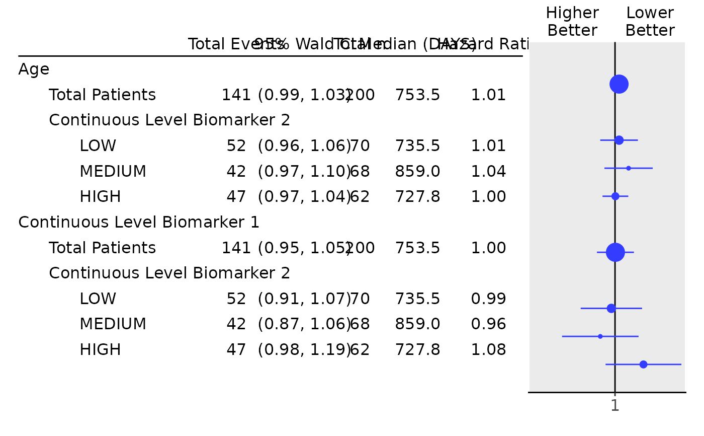 #> Total n Total Events Median Hazard Ratio 95% Wald CI p-value (Wald)