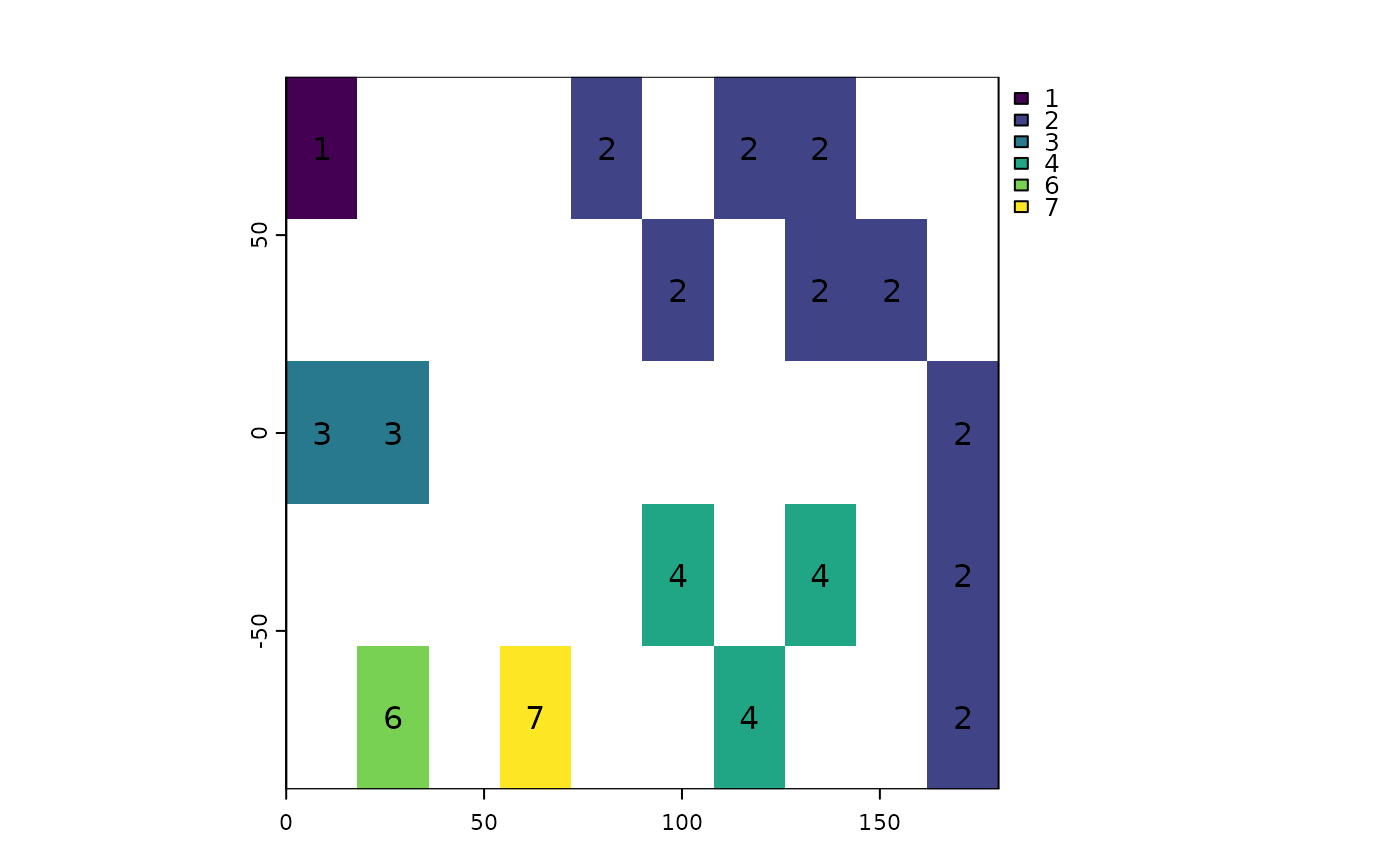 rp <- patches(r, directions=8, zeroAsNA=TRUE)