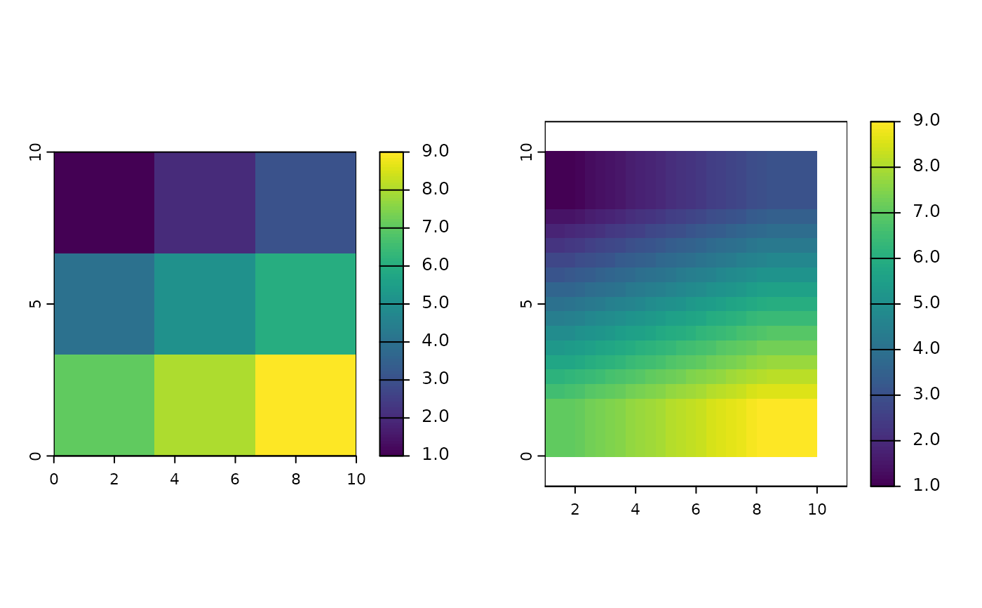 r <- rast(nrows=3, ncols=3, xmin=0, xmax=10, ymin=0, ymax=10)