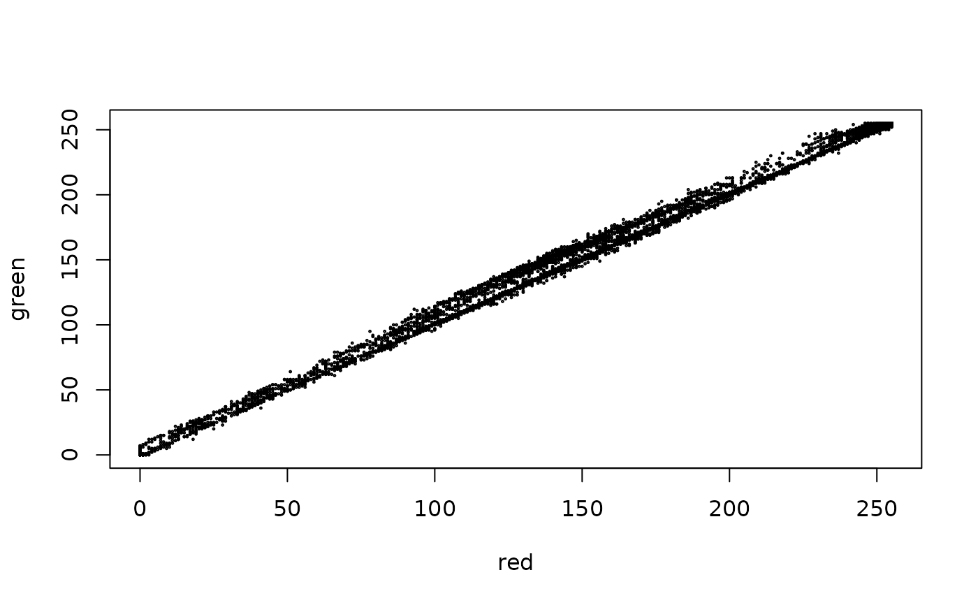 scatter.RdScatterplot of the values of two SpatRaster layers