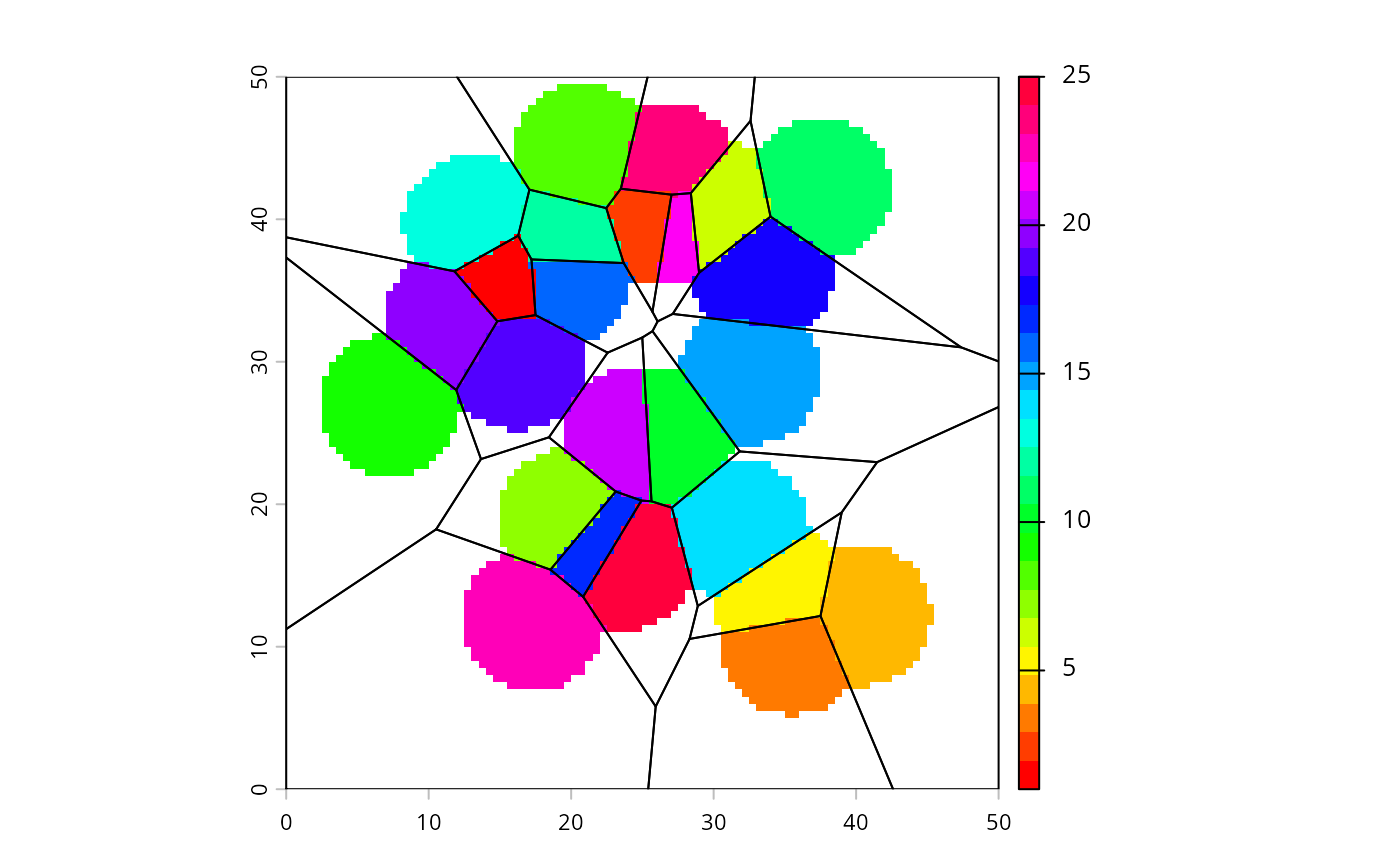 r <- rast(ncol=100, nrow=100, crs="local", xmin=0, xmax=50, ymin=0, ymax=50)