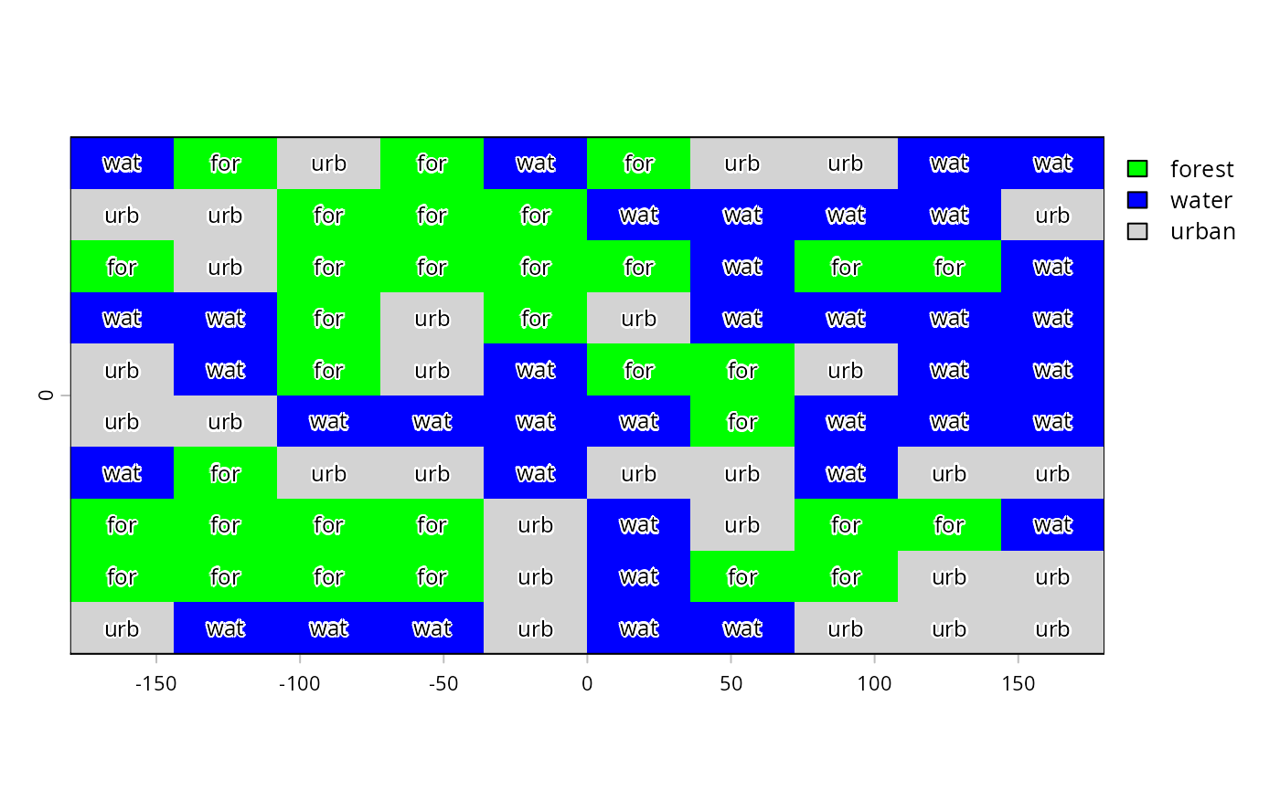 levels(r) <- data.frame(id=1:3, cover=c("forest", "water", "forest"))