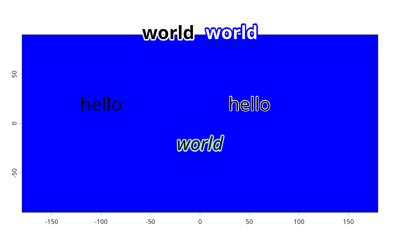 halo(0, 90, "world", font=2, cex=2, hw=.2, xpd=TRUE, pos=2)