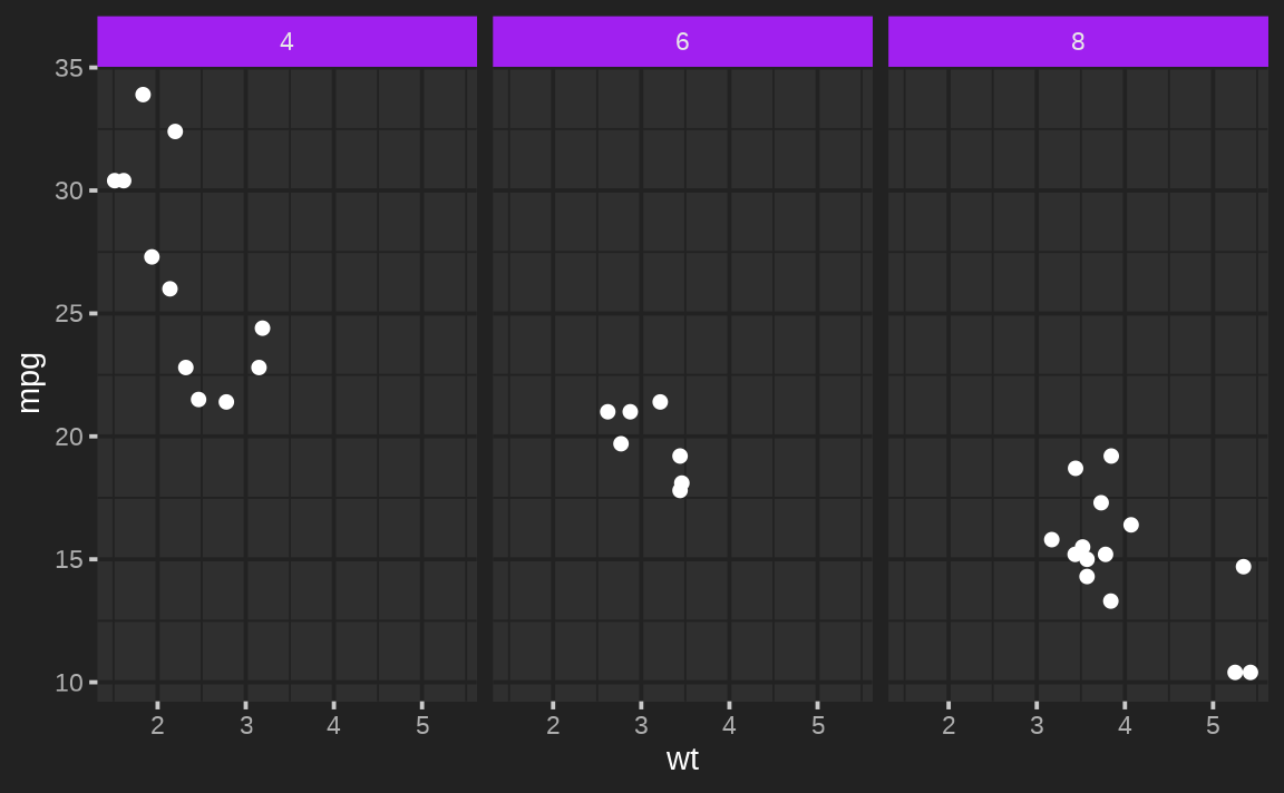facet_wrap(~cyl)
