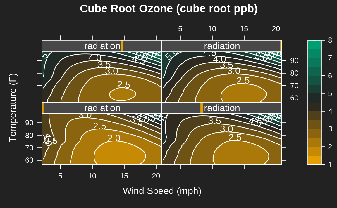 ozo.m <- loess((ozone^(1/3)) ~ wind * temperature * radiation,