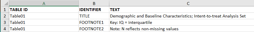 - Generate results: create analysis rows of summary statistics (for tables) or plots (for graphs).