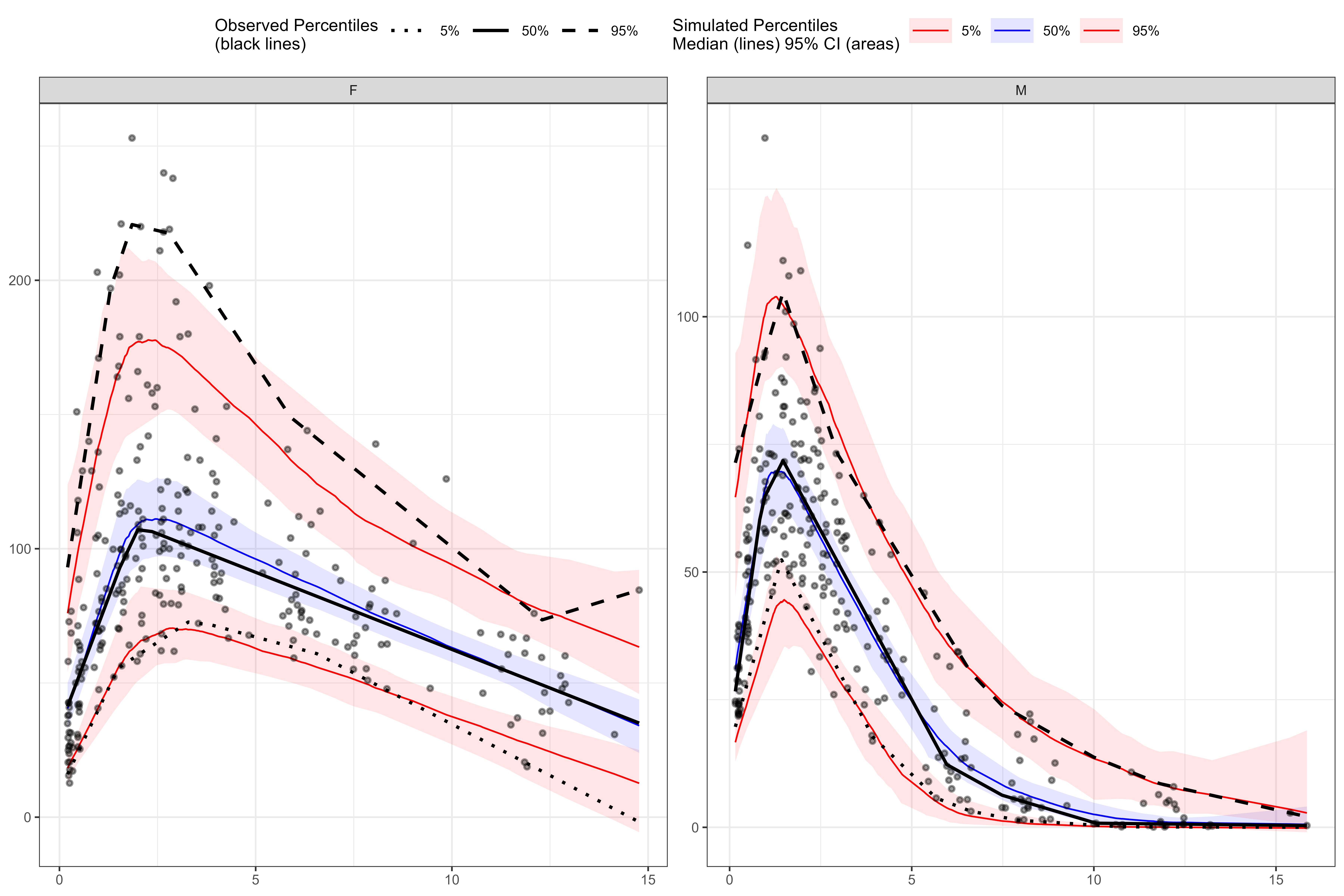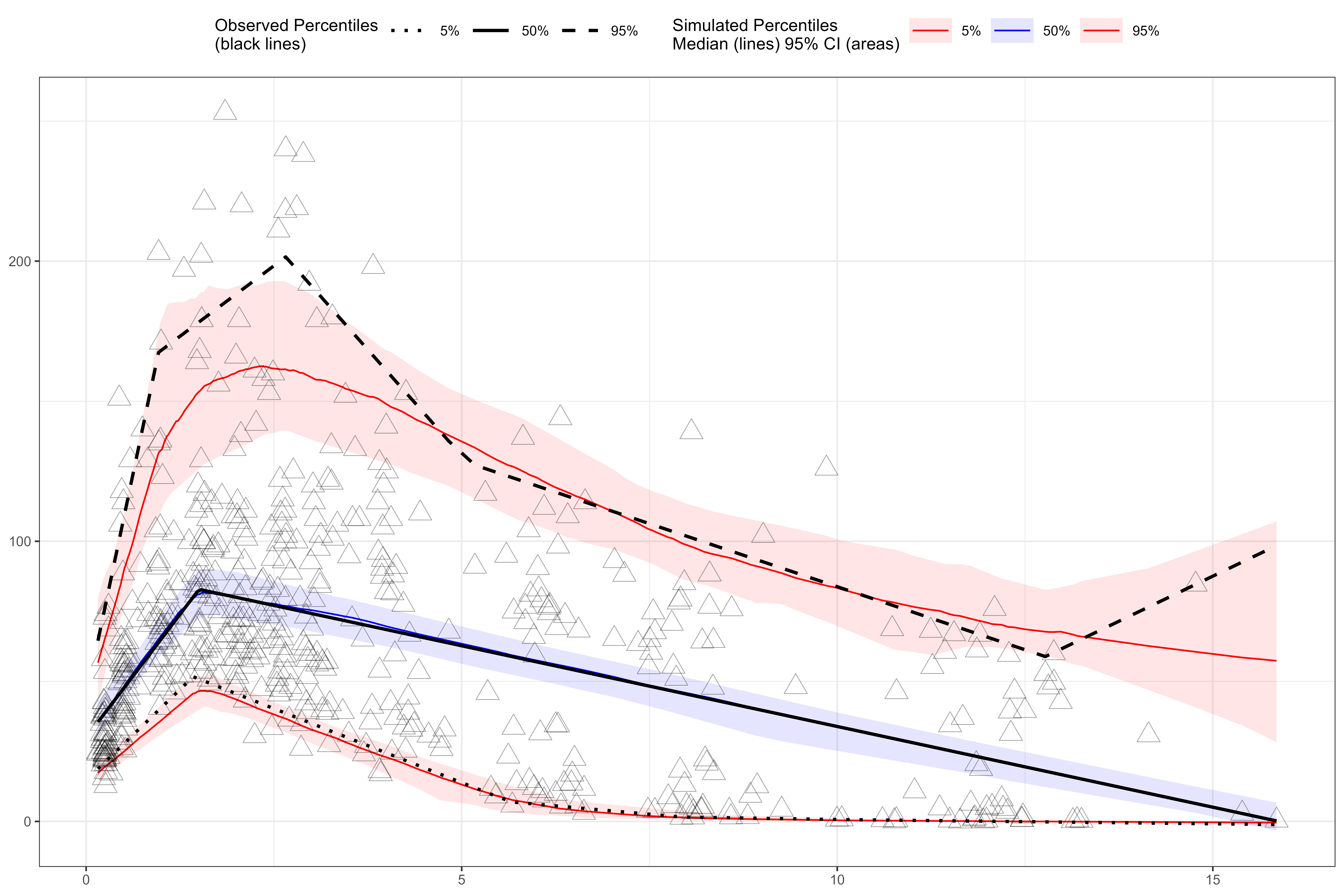 plot(vpc, point.size = 1.5, point.stroke = 2.5, point.alpha = 0.1, ribbon.alpha = 0.05)