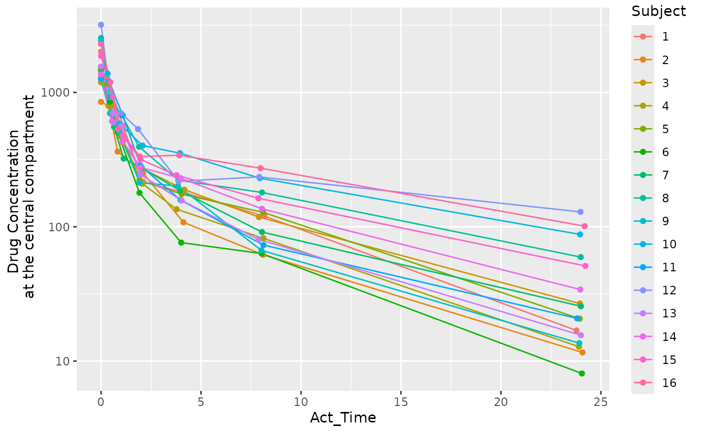 ggplot(conc_data, aes(x = Act_Time, y = Conc, group = Subject, color = Subject)) +