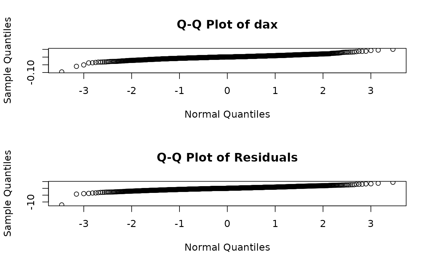 dax.garch <- garch(dax) # Fit a GARCH(1,1) to DAX returns