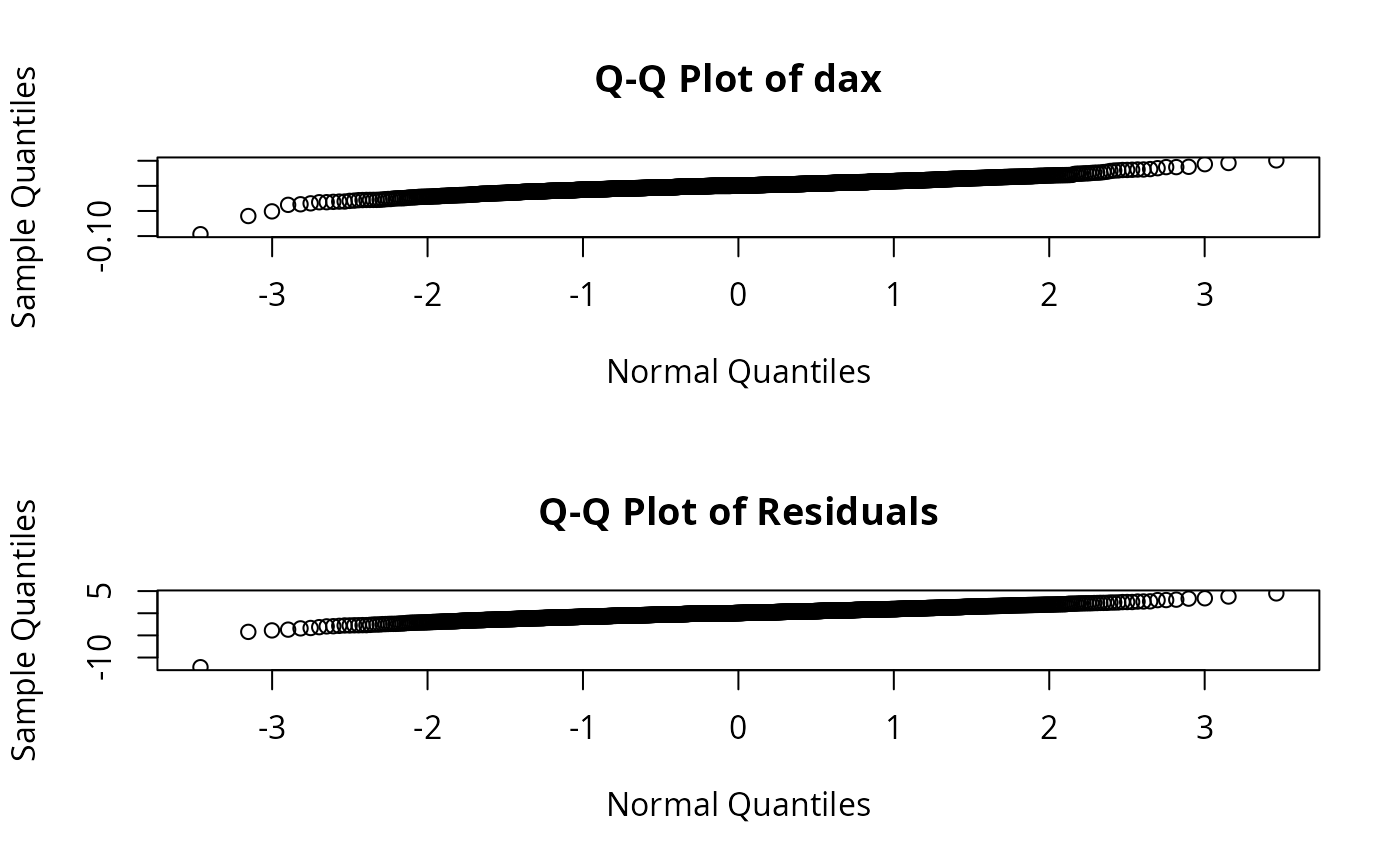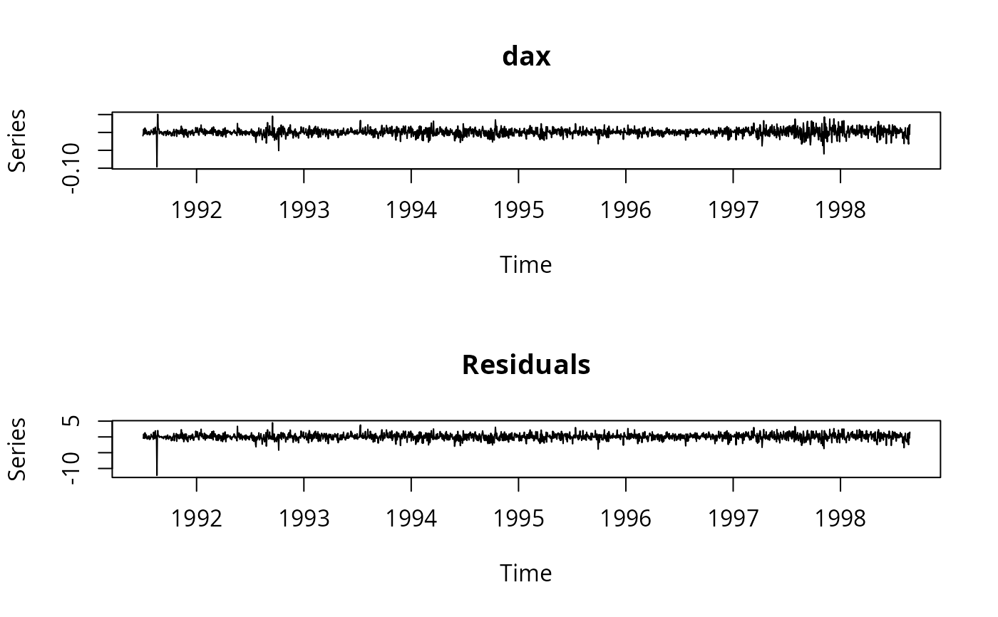 dax.garch <- garch(dax) # Fit a GARCH(1,1) to DAX returns