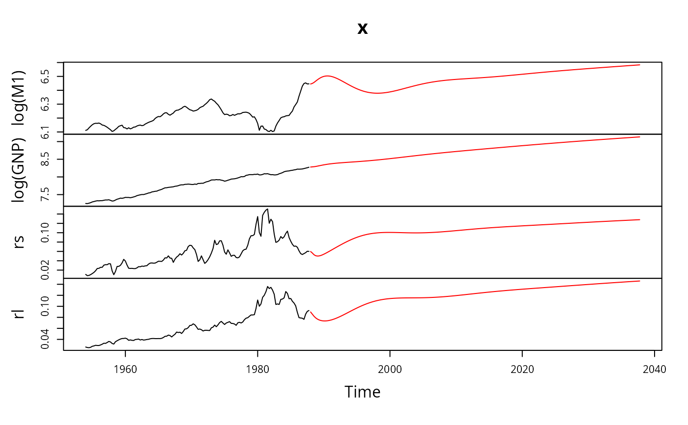 y <- predict(m.ar, x, n.ahead = 200, se.fit = FALSE)