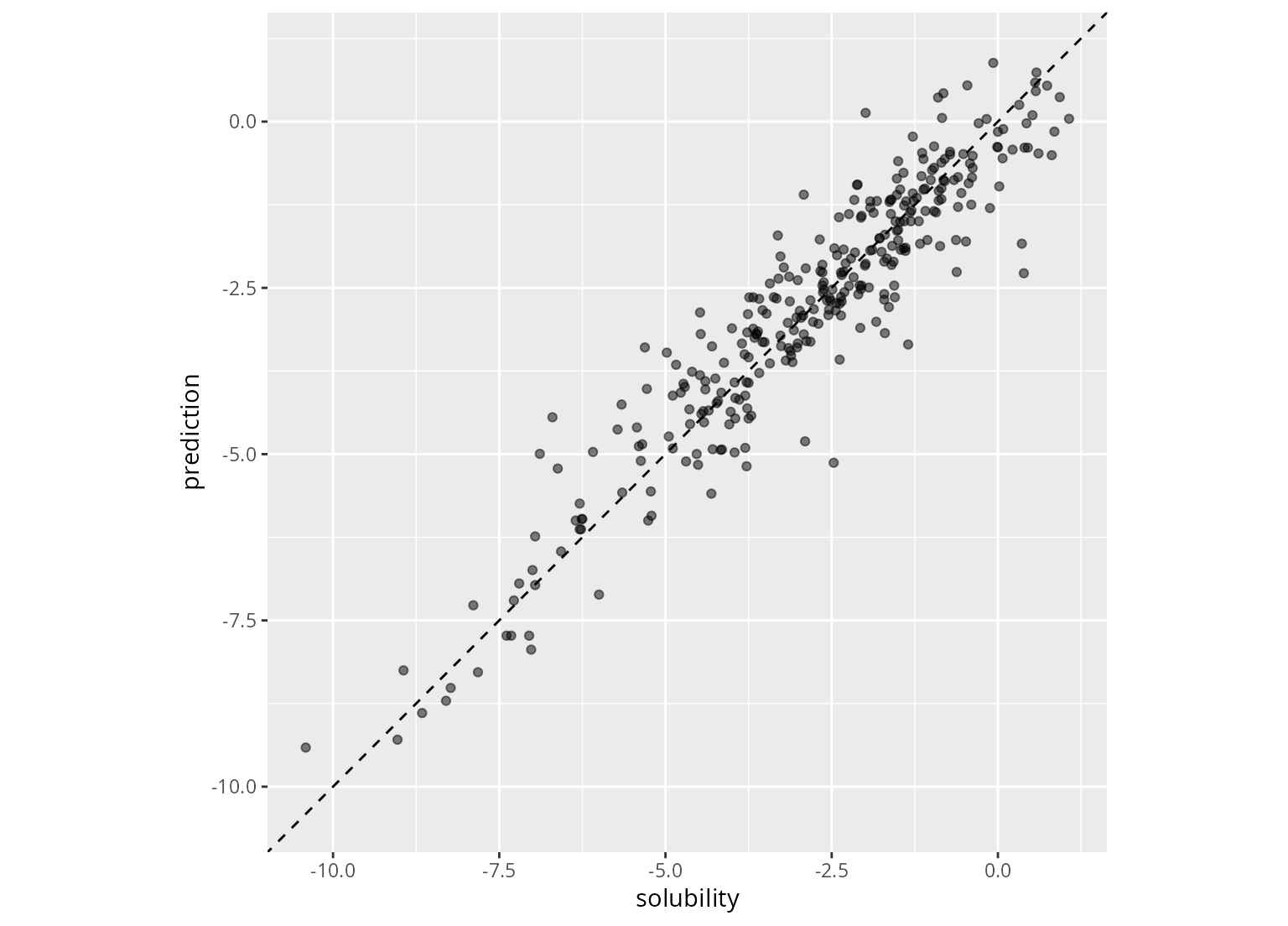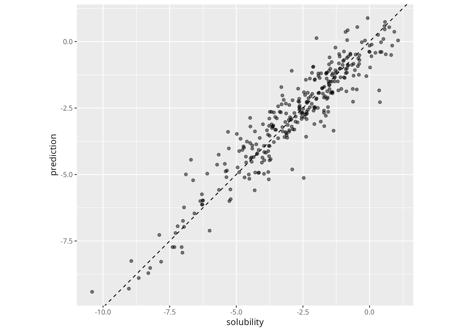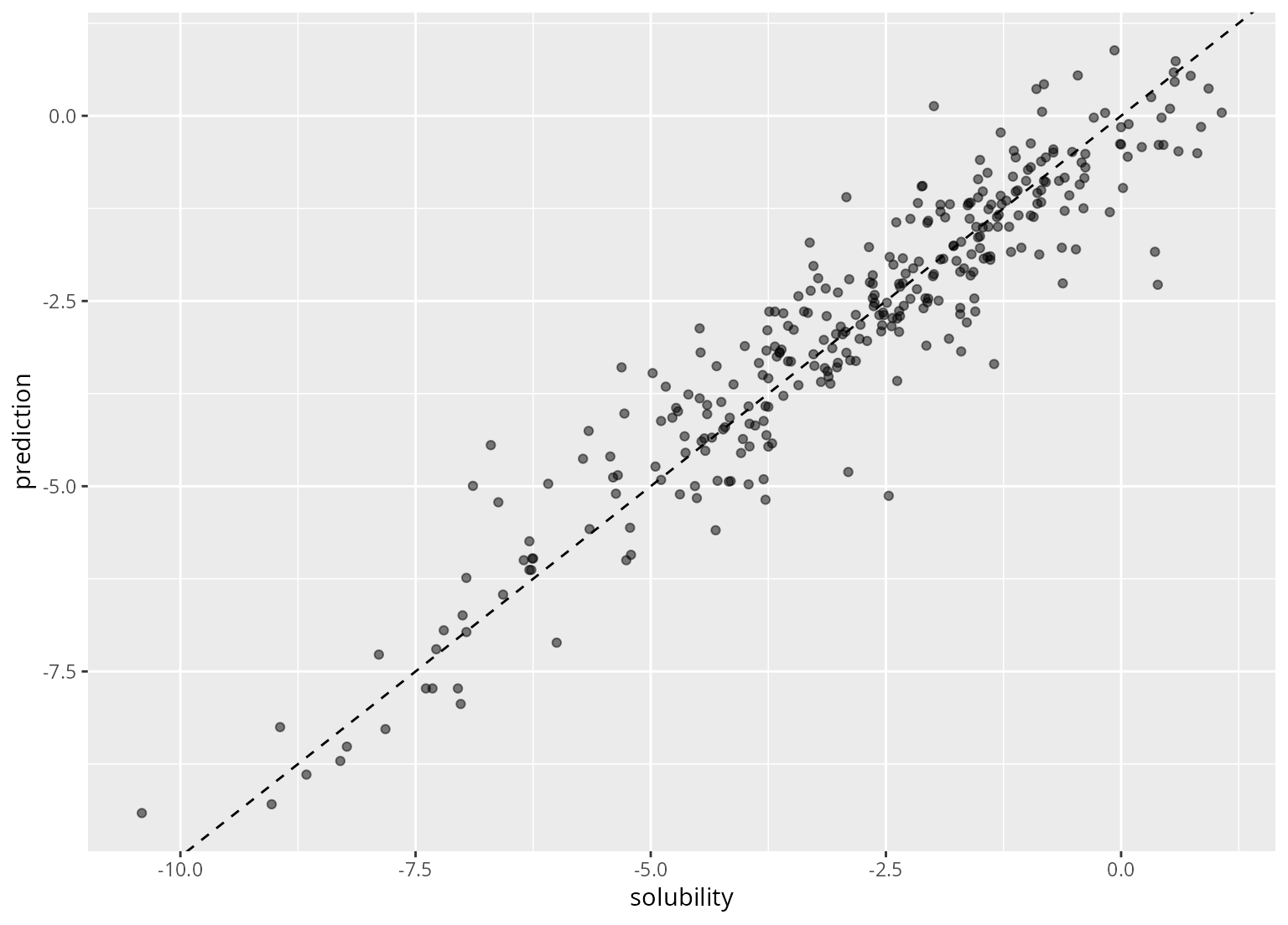 p <- ggplot(solubility_test, aes(x = solubility, y = prediction)) +