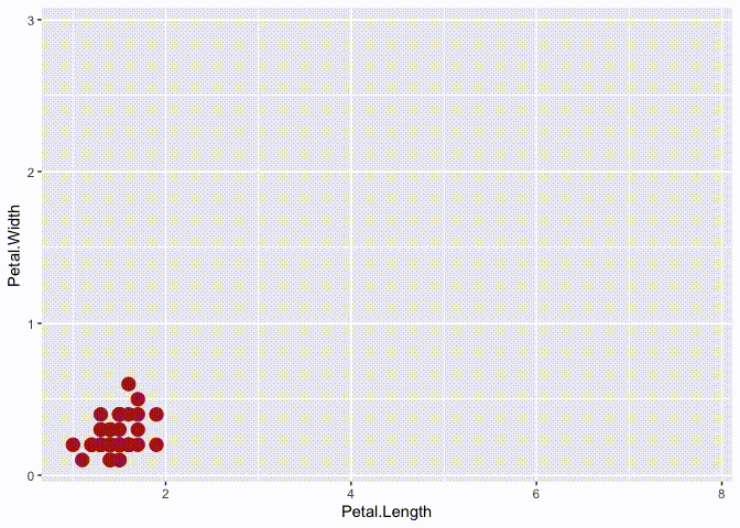 devtools::install_github('thomasp85/tweenr')Following is an example of using the pipeable tween_state() function with our belowed iris data: