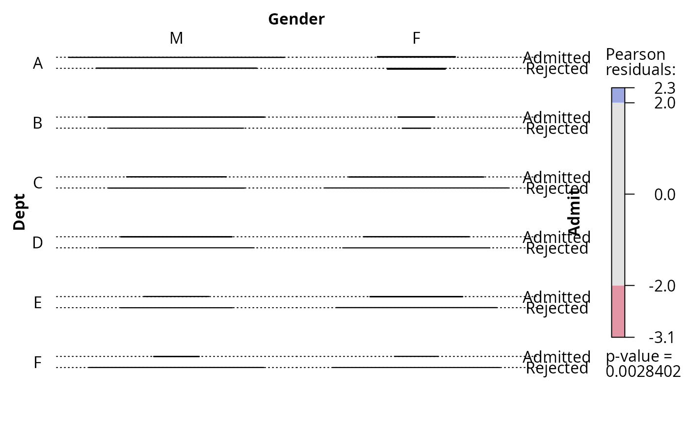 assoc(aperm(UCBAdmissions), expected = ~ (Admit + Gender) * Dept, compress = FALSE,