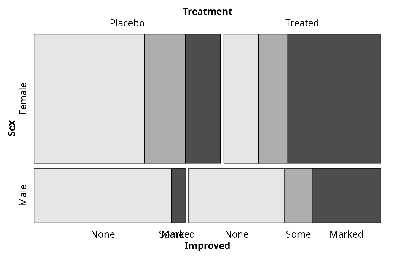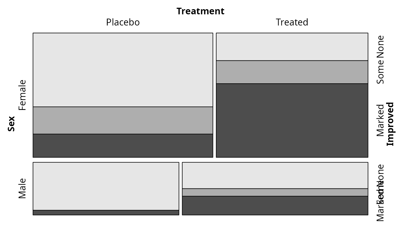 mosaic(Improved ~ Treatment | Sex, data = Arthritis, zero_size = 0)