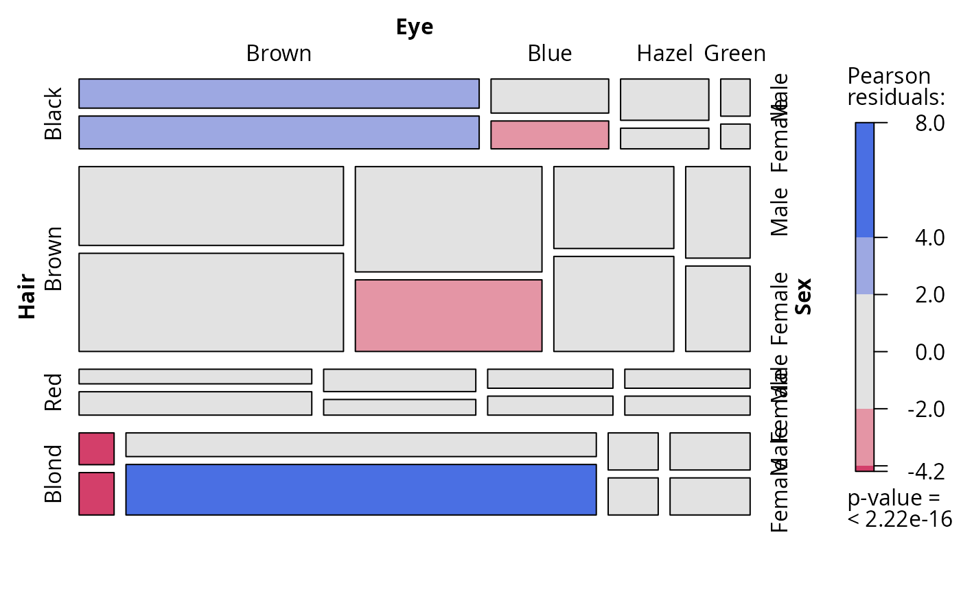 mosaic(HairEyeColor, shade = TRUE)