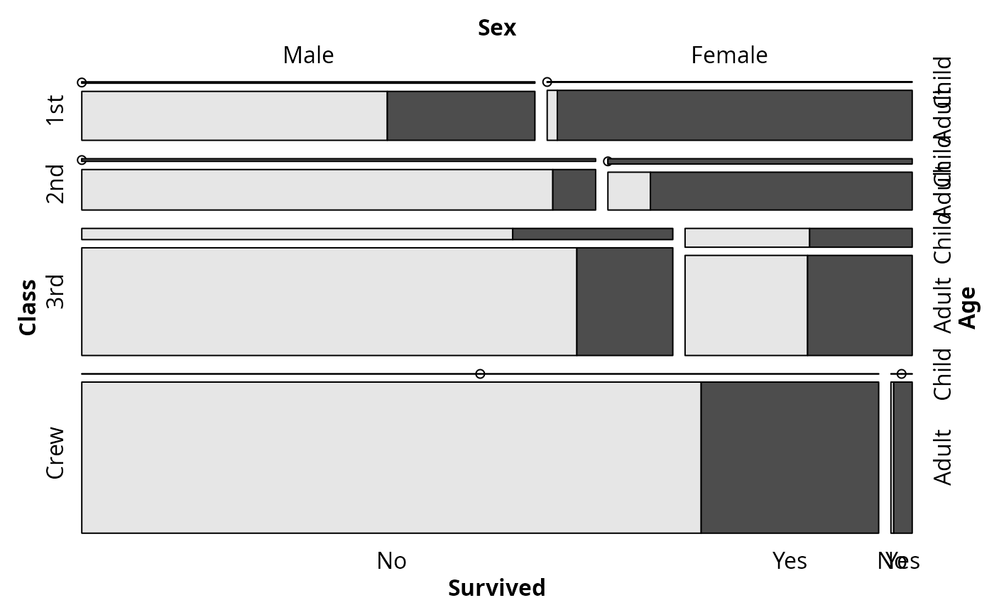 Friendly, M. (1994), Mosaic displays for multi-way contingency tables. Journal of the American Statistical Association, 89, 190–200.