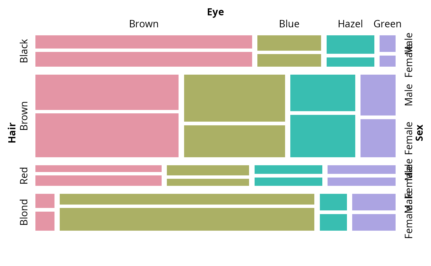 Friendly M. (1994), Mosaic Displays for Multi-Way Contingency Tables. Journal of the American Statistical Association, 89, 190–200.