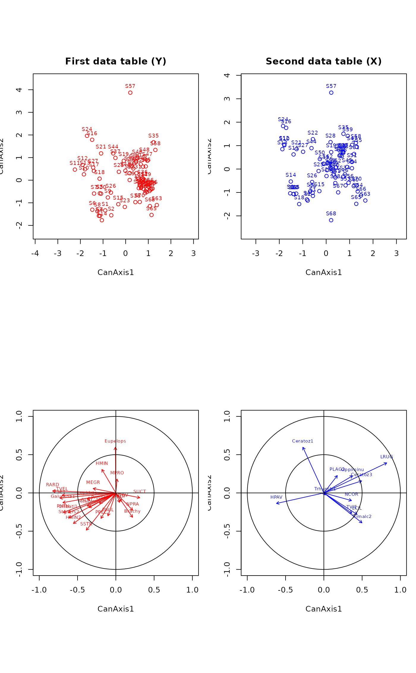 #> CCorA(Y = mite.hel.1, X = mite.hel.2)