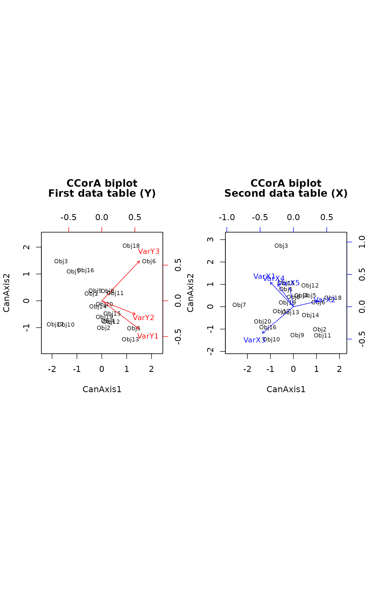 #> CCorA(Y = mat1, X = mat2, permutations = 99)