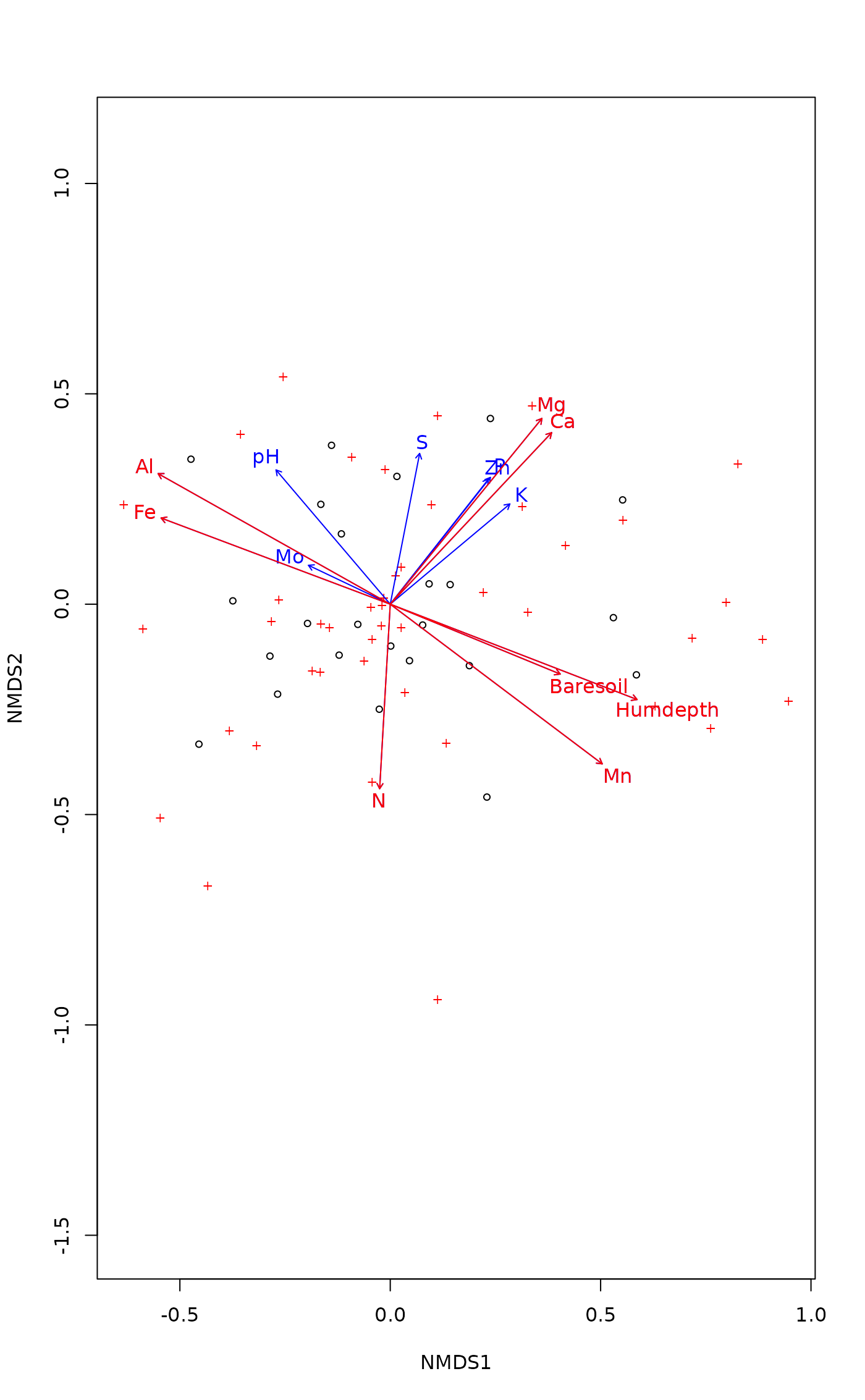 #> NMDS1 NMDS2 r2 Pr(>r)