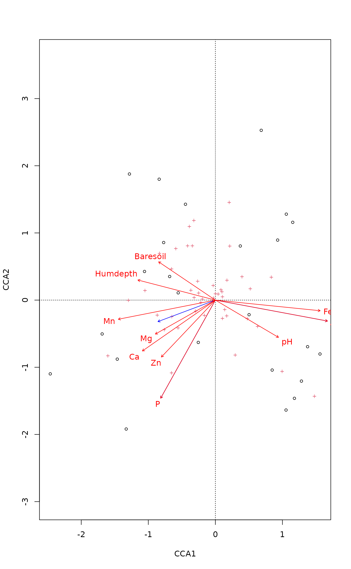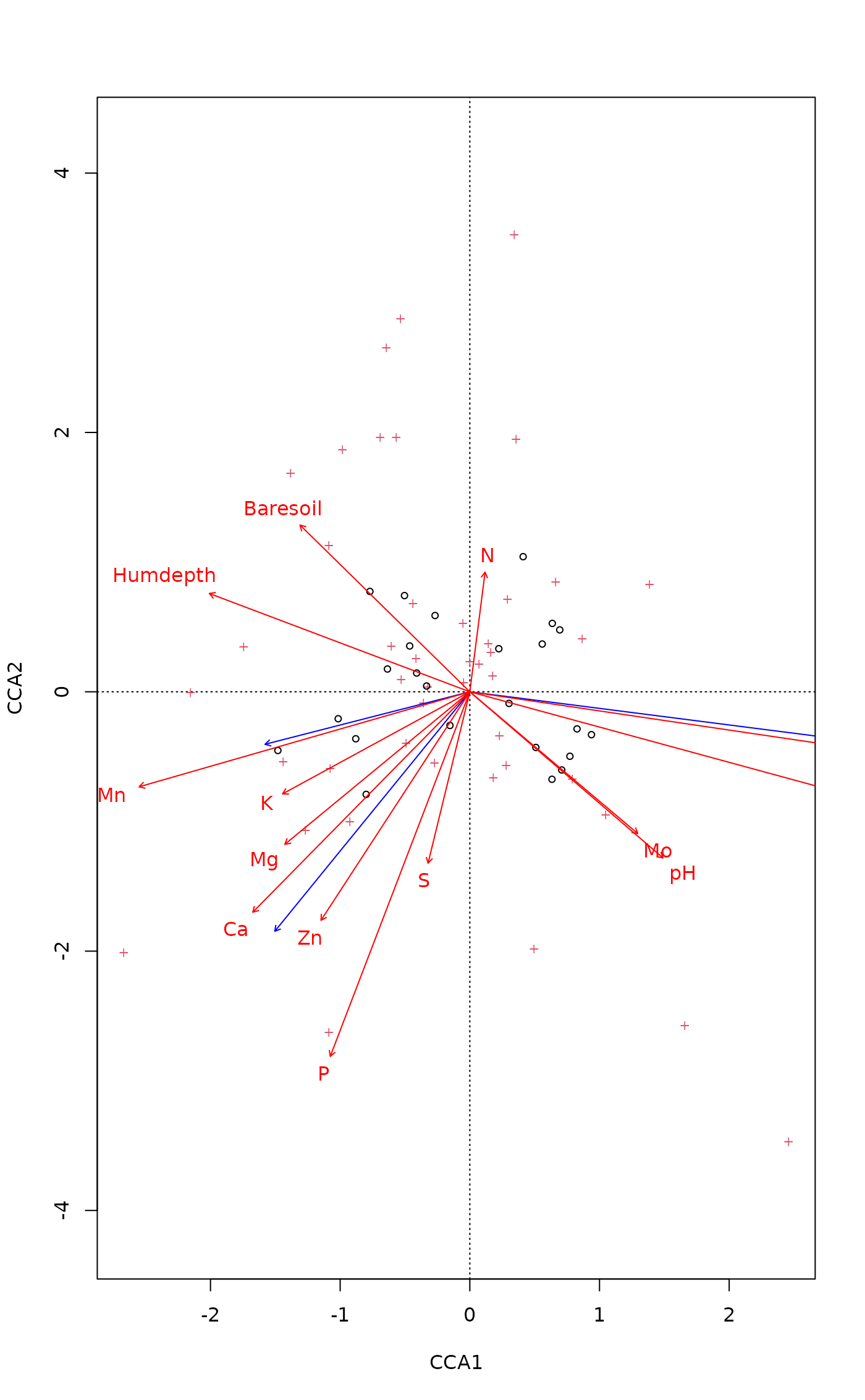 fit <- envfit(ord, varechem, perm = 0, display = "lc", scaling = "sites")