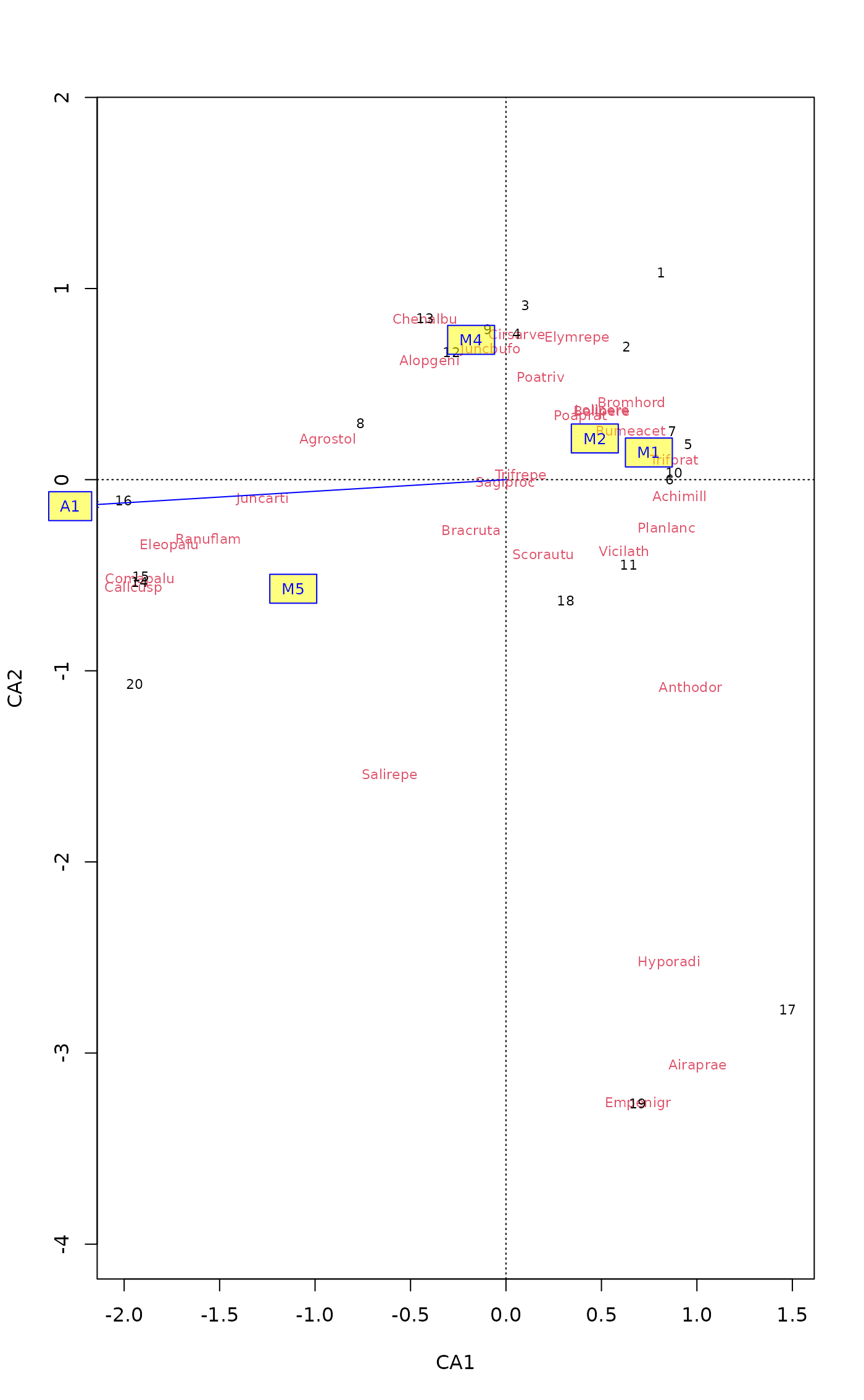fit <- envfit(ord ~ Moisture + A1, dune.env, perm = 0)