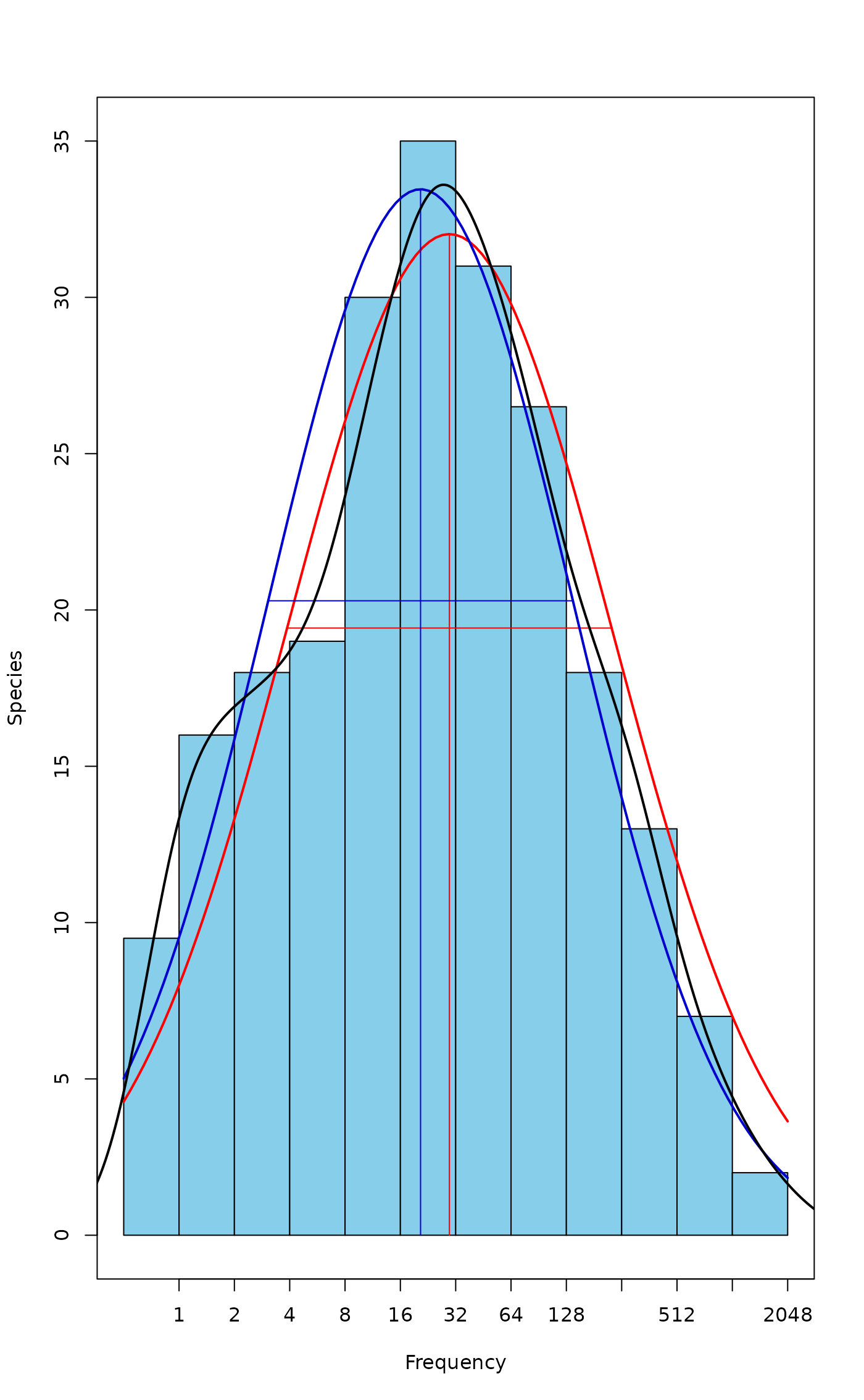 number of species at mode. The lognormal model is usually truncated